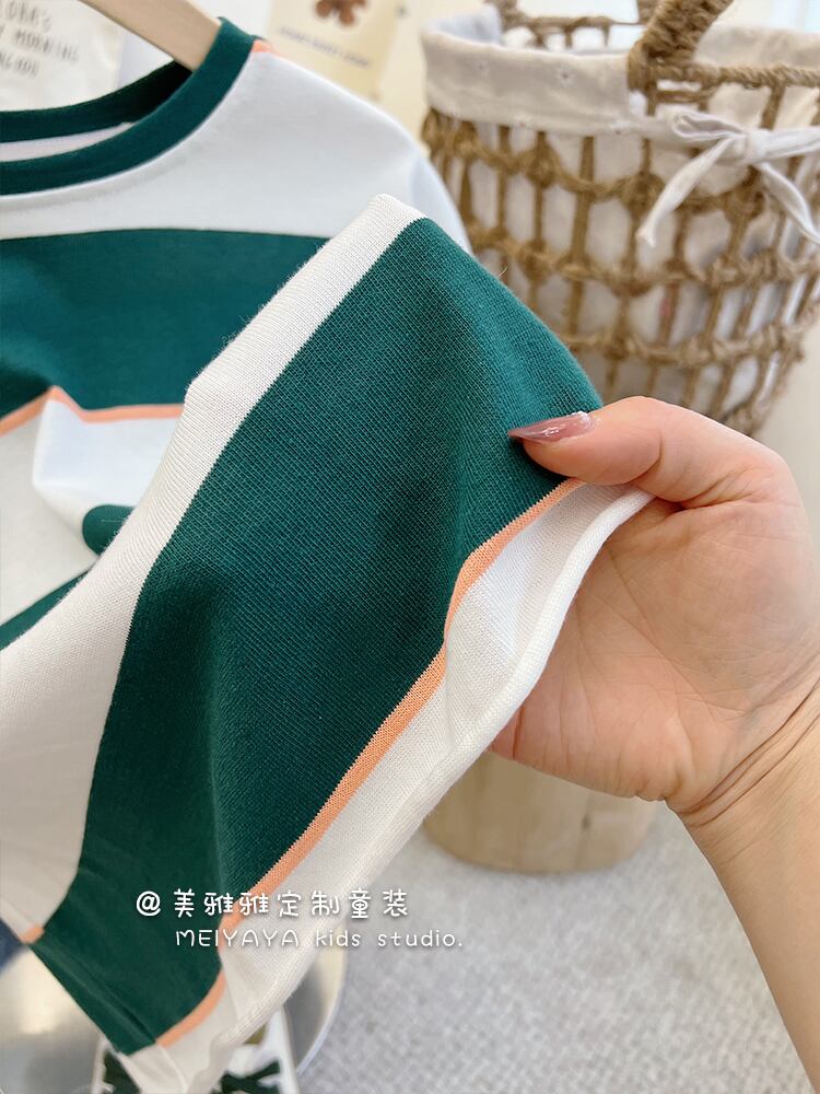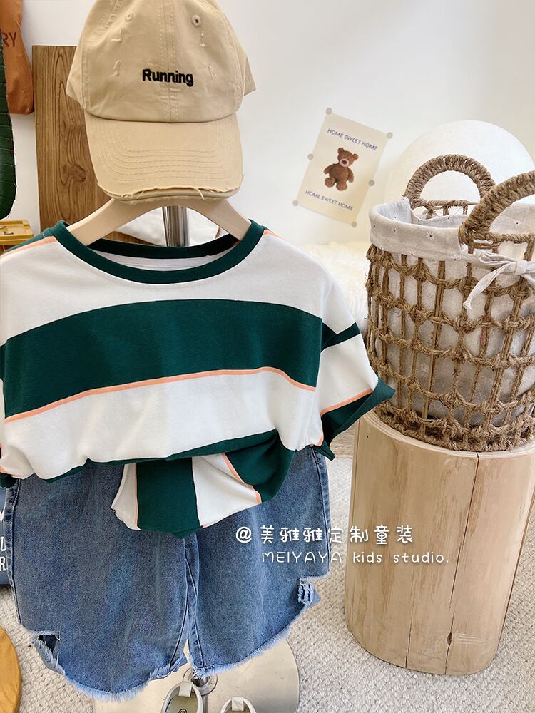 薄手ストライプカジュアルTシャツ 4/12 春夏 SS 子供服 韓国風 mi0611662823164