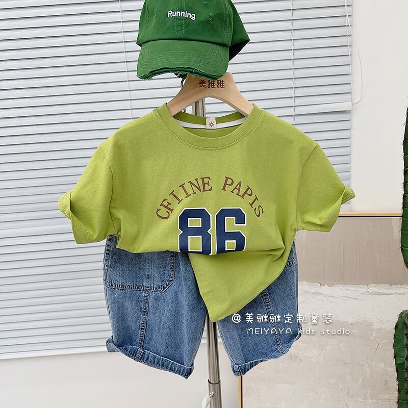 薄手ホワイトグリーンカジュアルTシャツ サマー 夏物 4/12 春夏 SS 子供服 韓国風 mi066998391341