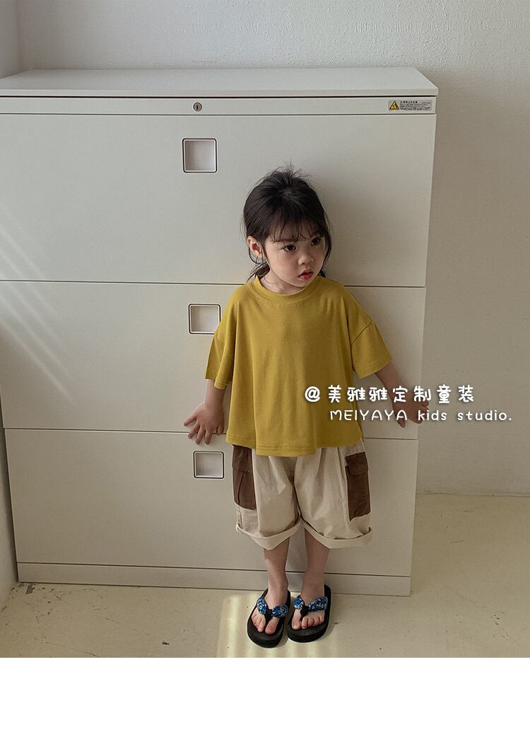 スタイルサマールーズパンツ カラーオーバーオール ショーツ 夏物 ブルマー 4/12 春夏 SS 子供服 韓国風 mi0675974843092