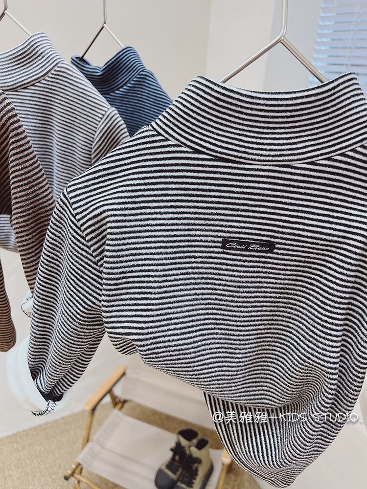 シャツ ベルベットワンピースストライプTシャツ オータムウィンター 秋物 冬物 4/12 春夏 SS 子供服 韓国風 mi0631190733020