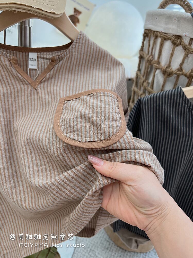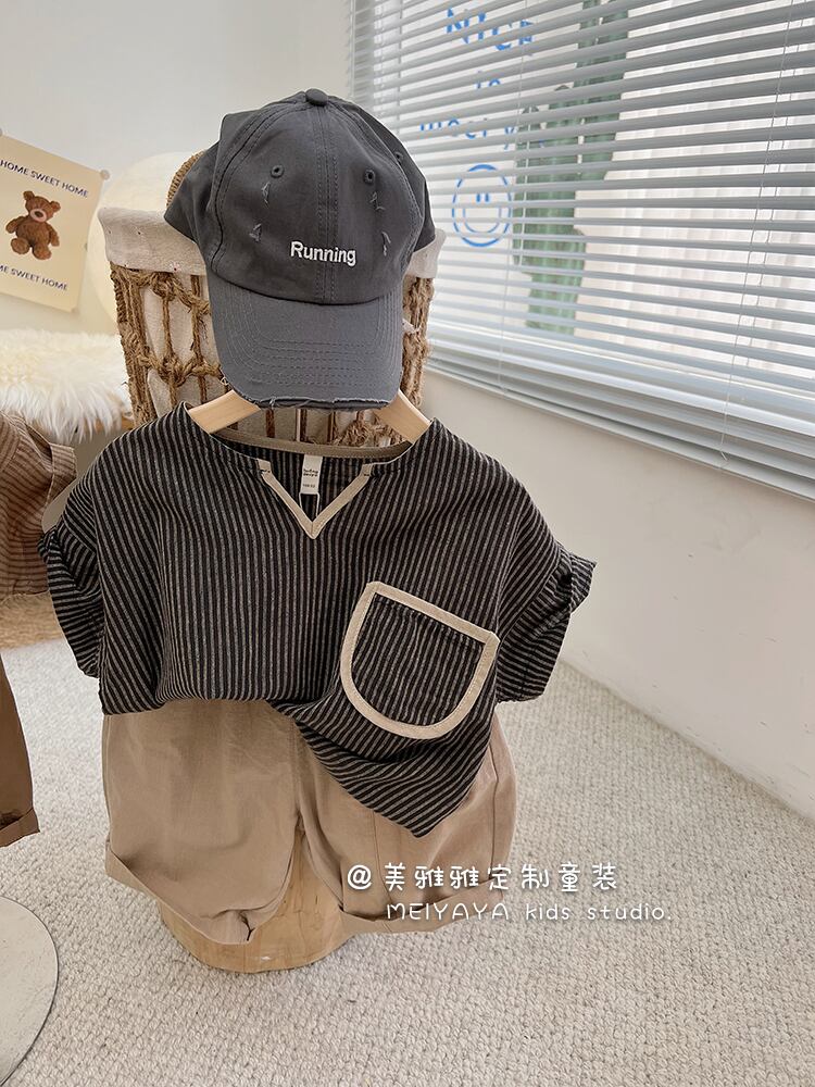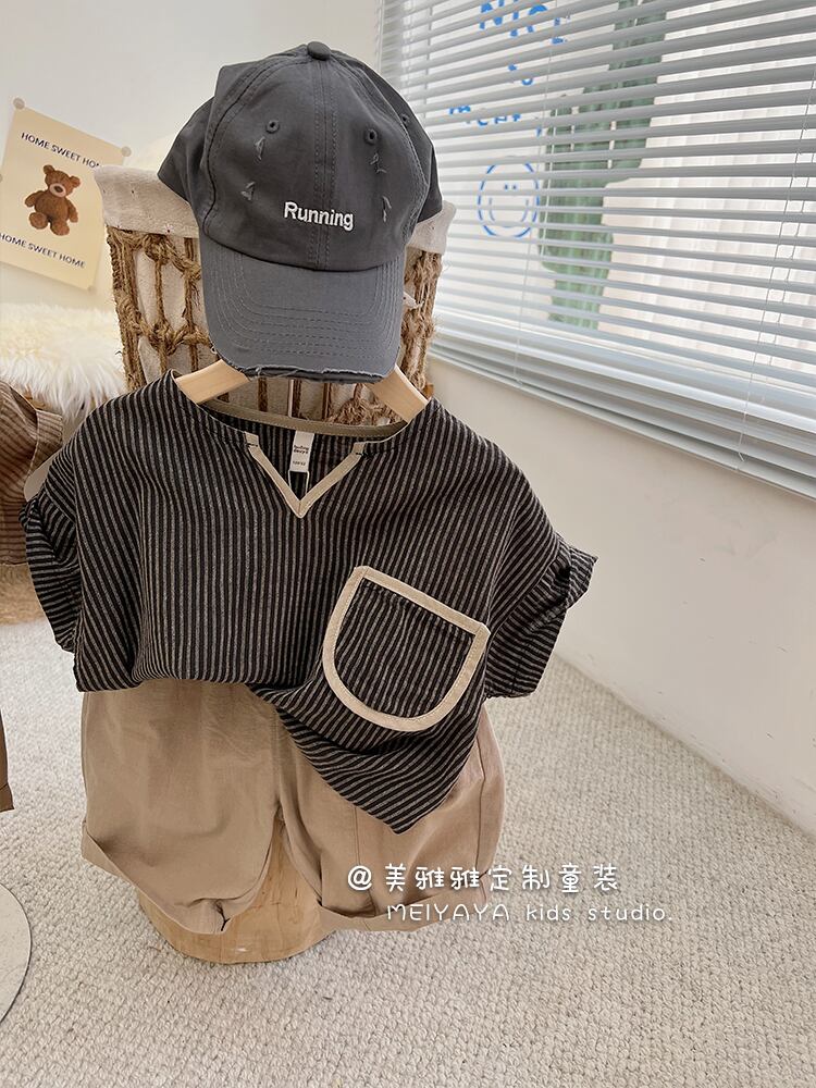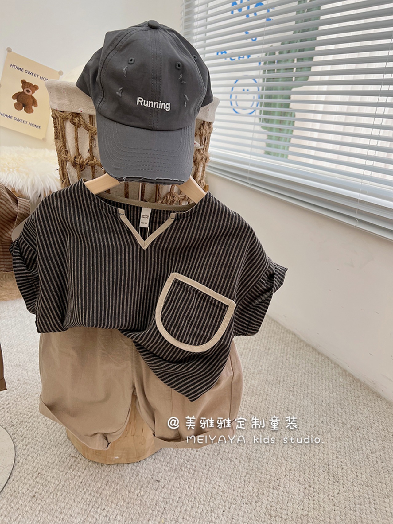 ルーズストライプシャツVネックポケット Tシャツ 4/12 春夏 SS 子供服 韓国風 mi0630240177283
