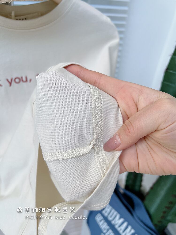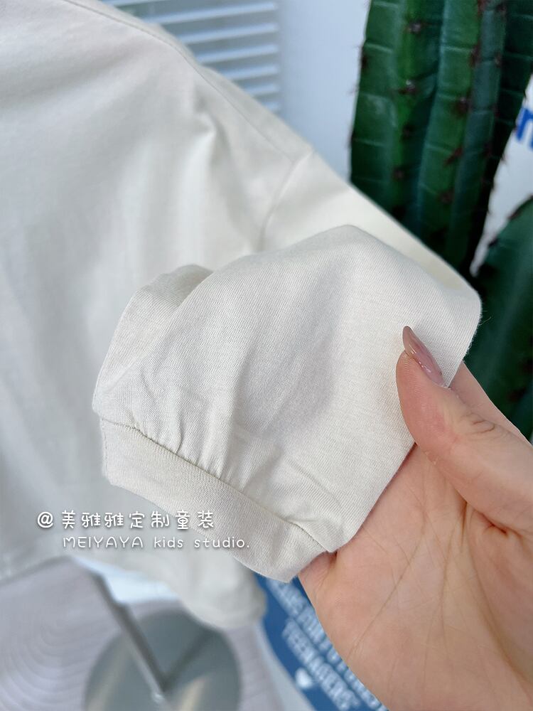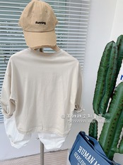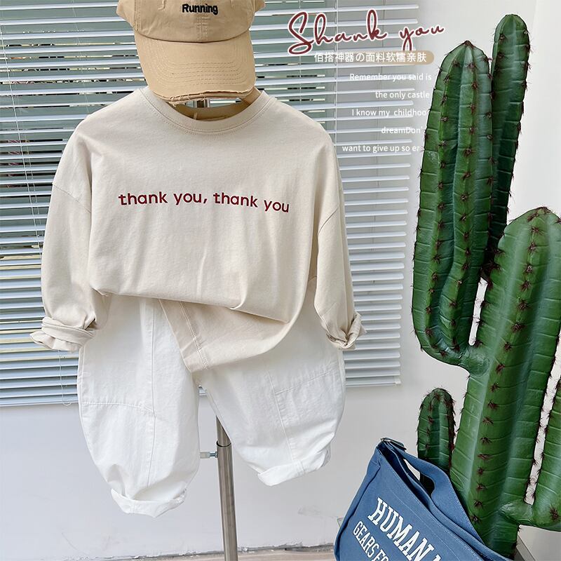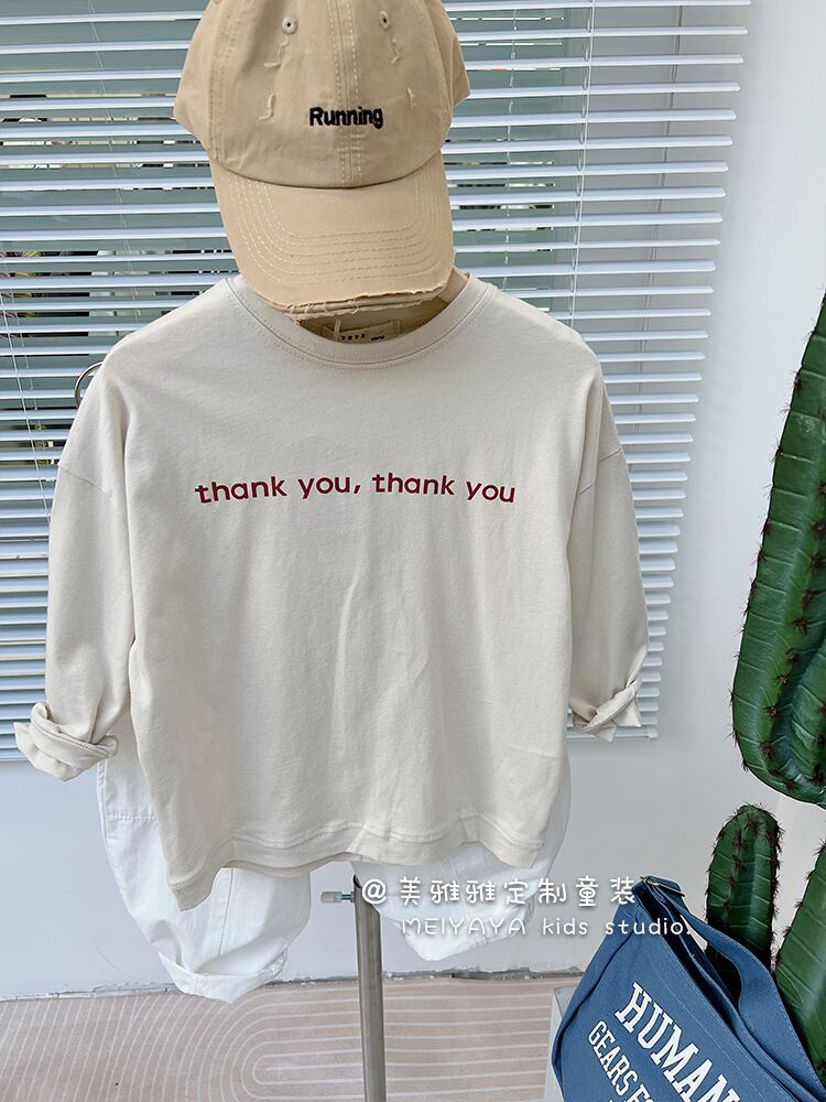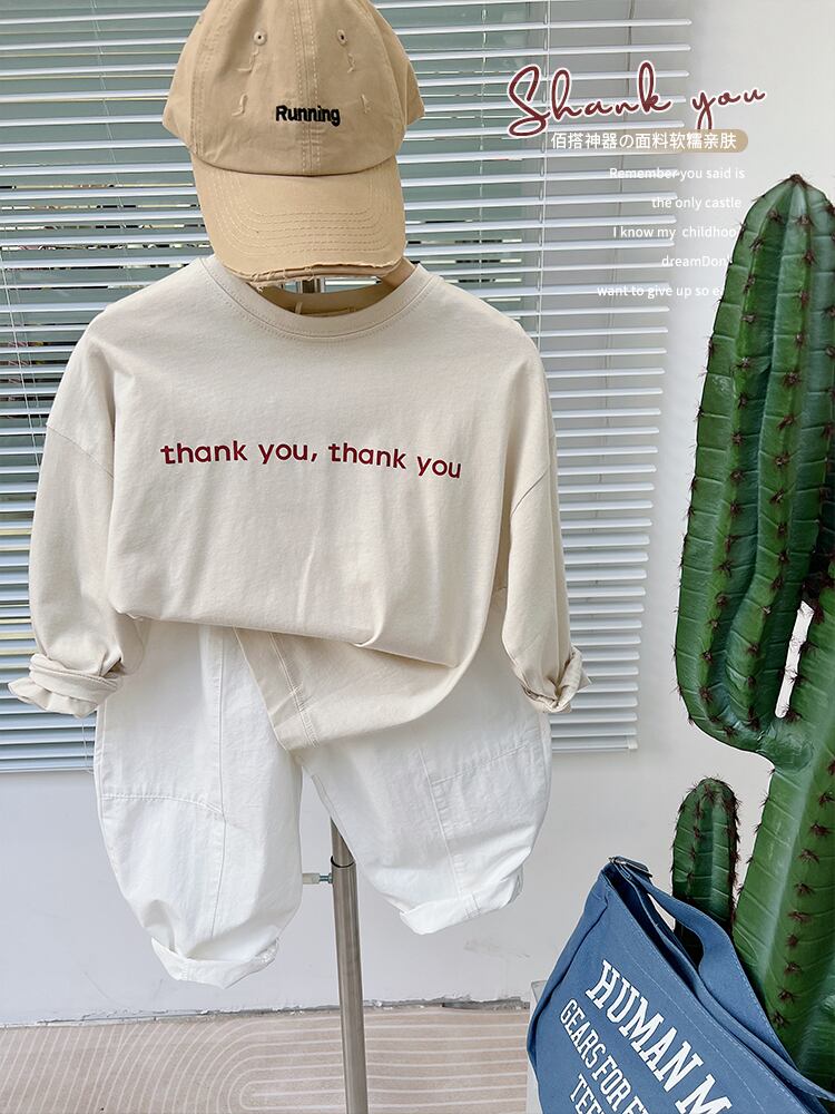 スプリングベージュラウンドネックTシャツ ソリッド カラー薄手長袖スリーブ ロング 春物 Oネック ソリッドカラー 4/12 春夏 SS 子供服 韓国風 mi0631448412857