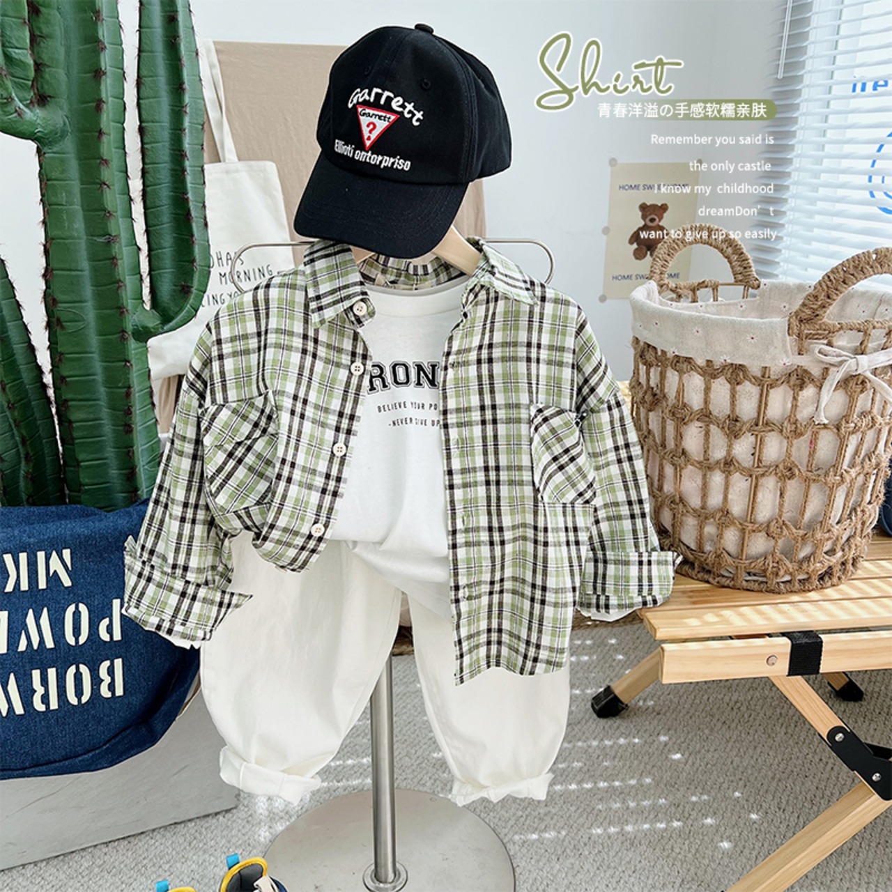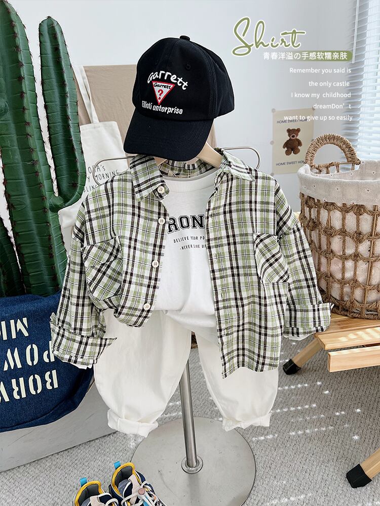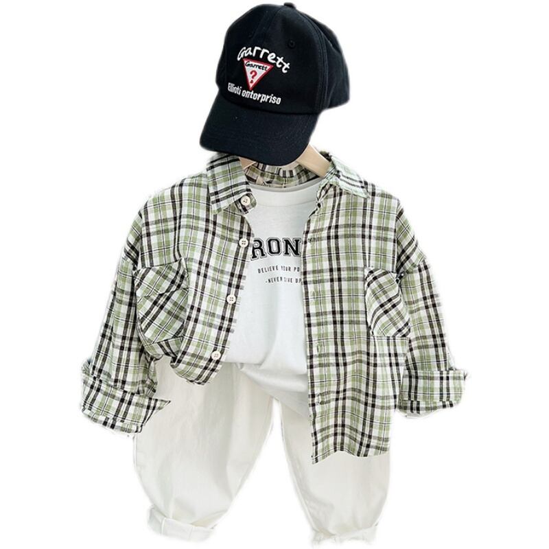格子柄ボタンカーディガンシャツ ロング 4/12 春夏 SS 子供服 韓国風 mi0621093992257