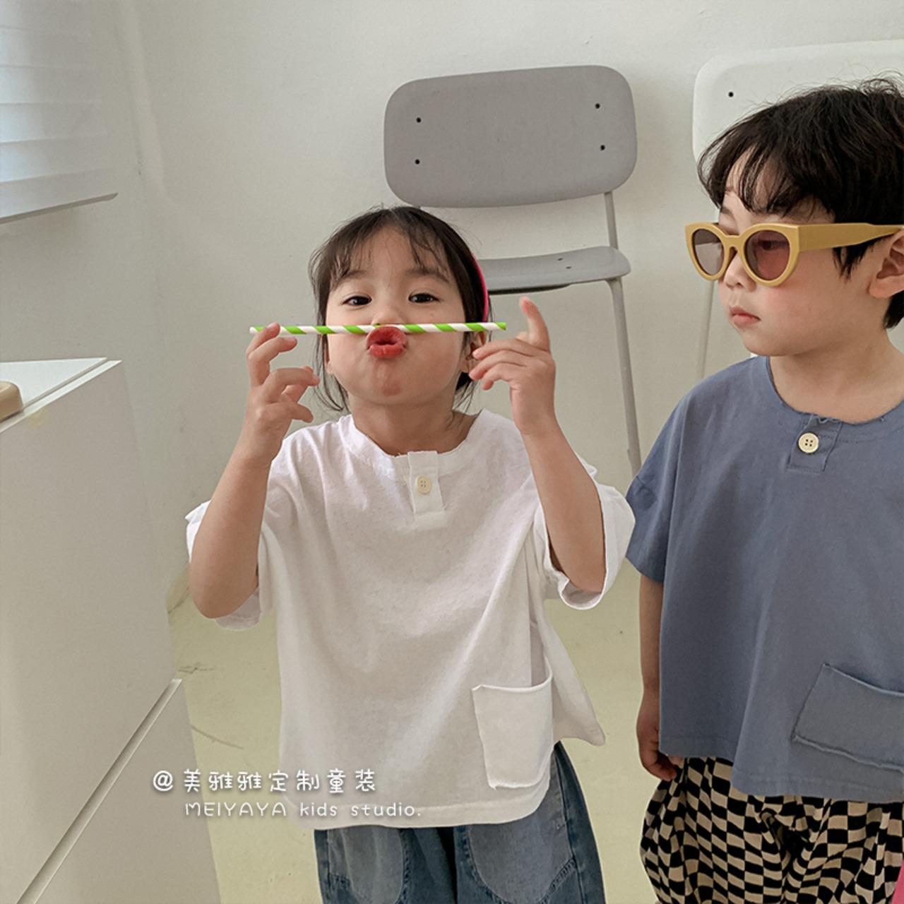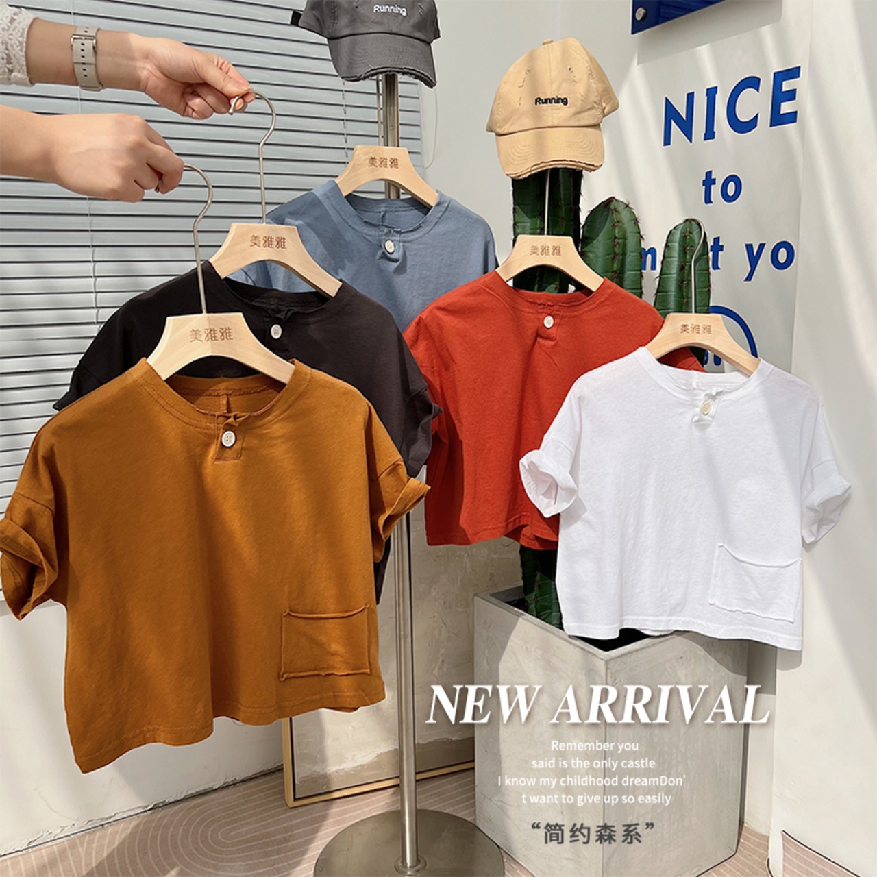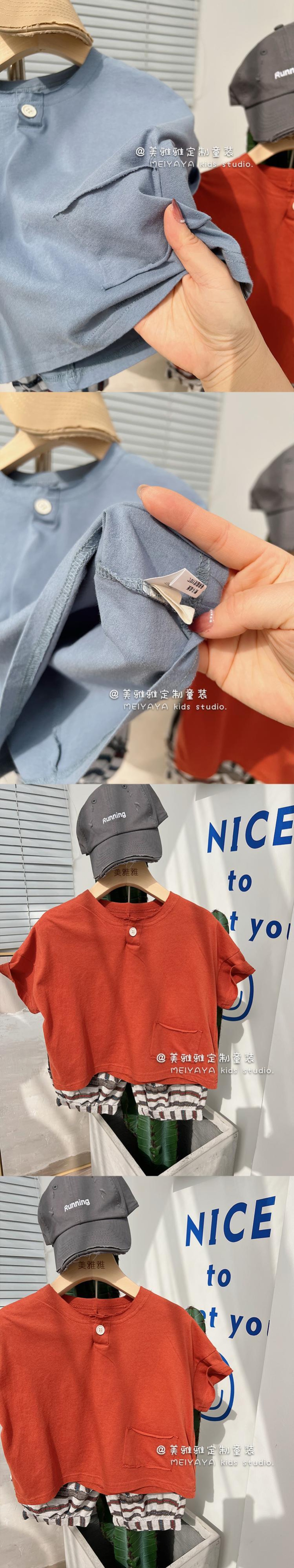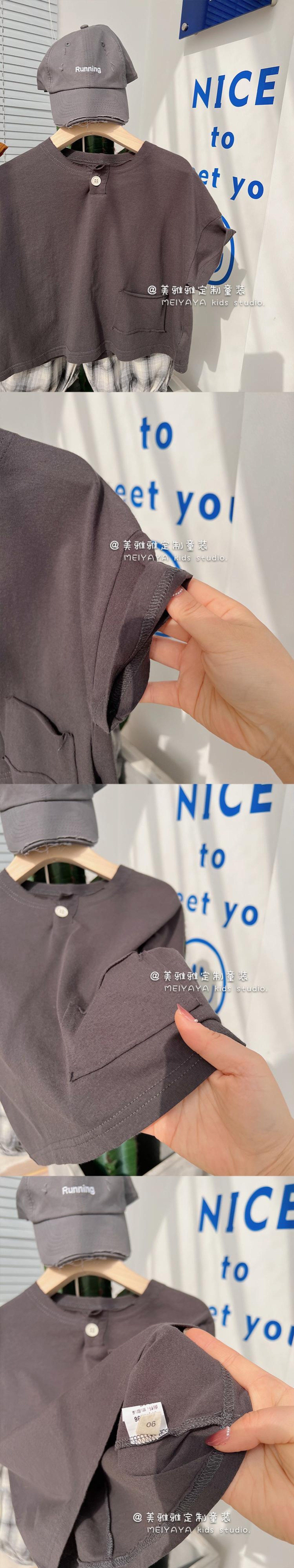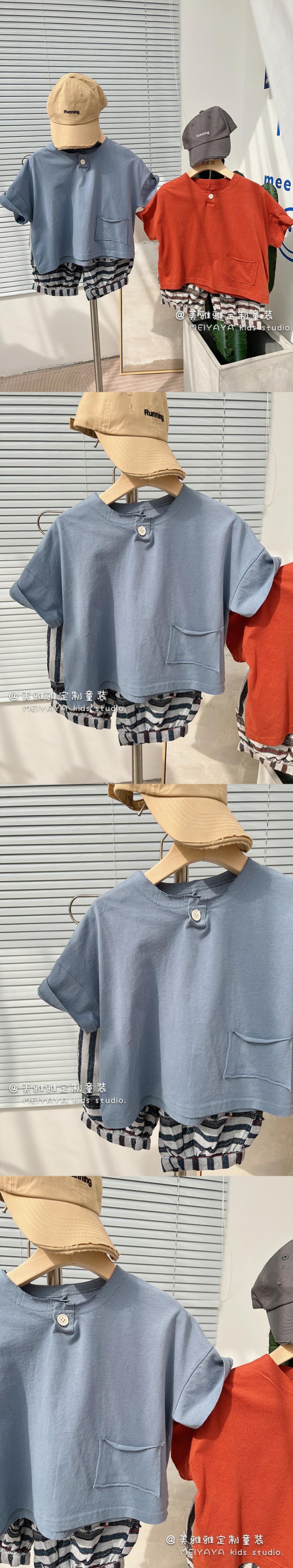 ボタンソリッド カラーカジュアルスタンダード薄手Tシャツ ショート レトロ 半袖 ハーフスリーブ ソリッドカラー 4/12 春夏 SS 子供服 韓国風 mi063061473430