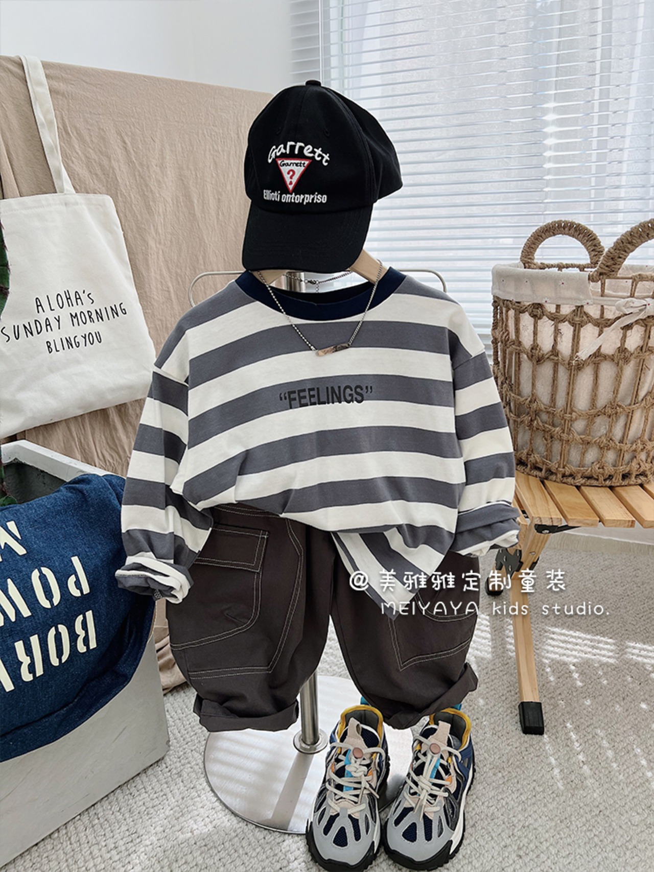 スプリングストライプシャツ Tシャツ ロング コットン 春物 4/12 春夏 SS 子供服 韓国風 mi0671056004201