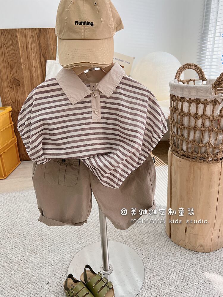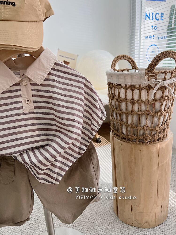 ストライプシャツ スリーブサマーTシャツ 夏物 4/12 春夏 SS 子供服 韓国風 mi0617118558025