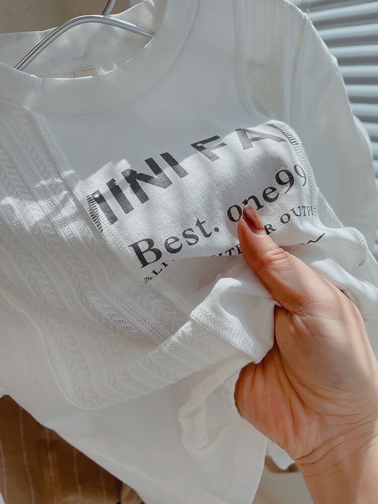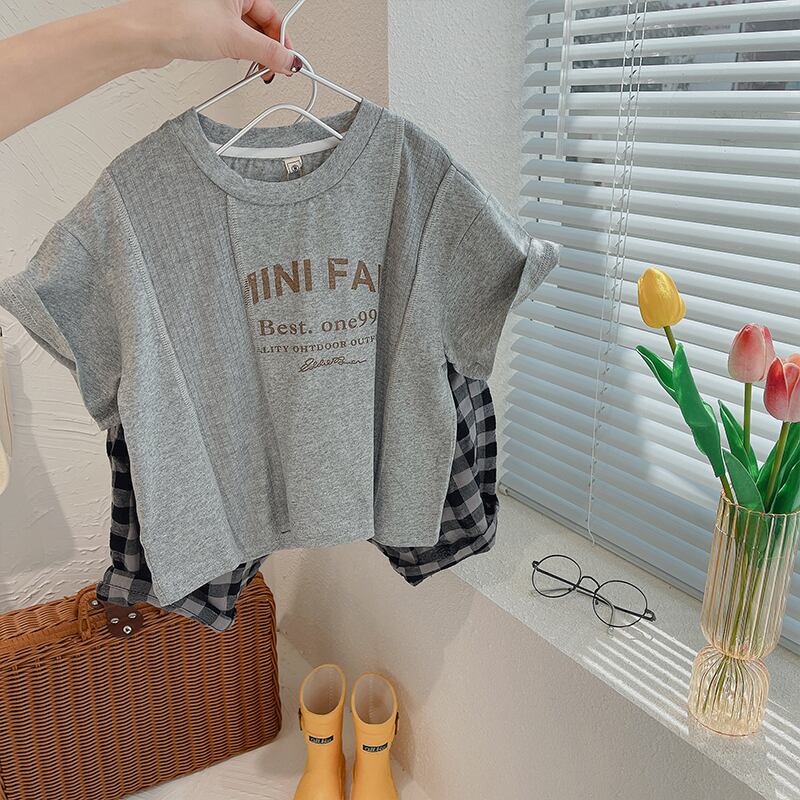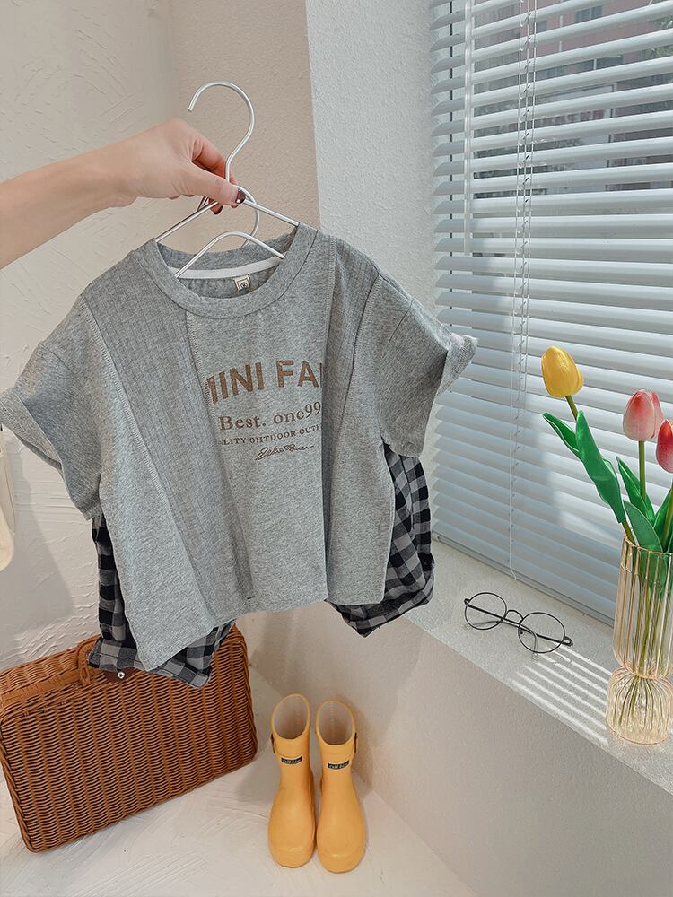 サマースタイルルーズカジュアルTシャツ プリーツショート 半袖 ハーフスリーブ 夏物 ステッチ 4/12 春夏 SS 子供服 韓国風 mi0680330945027