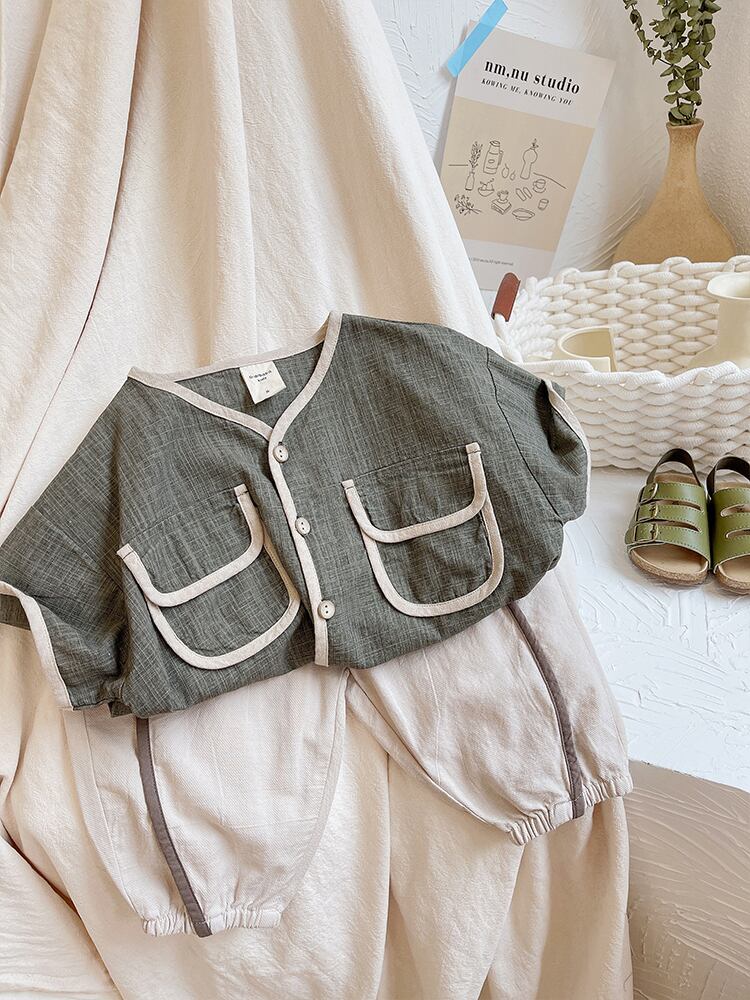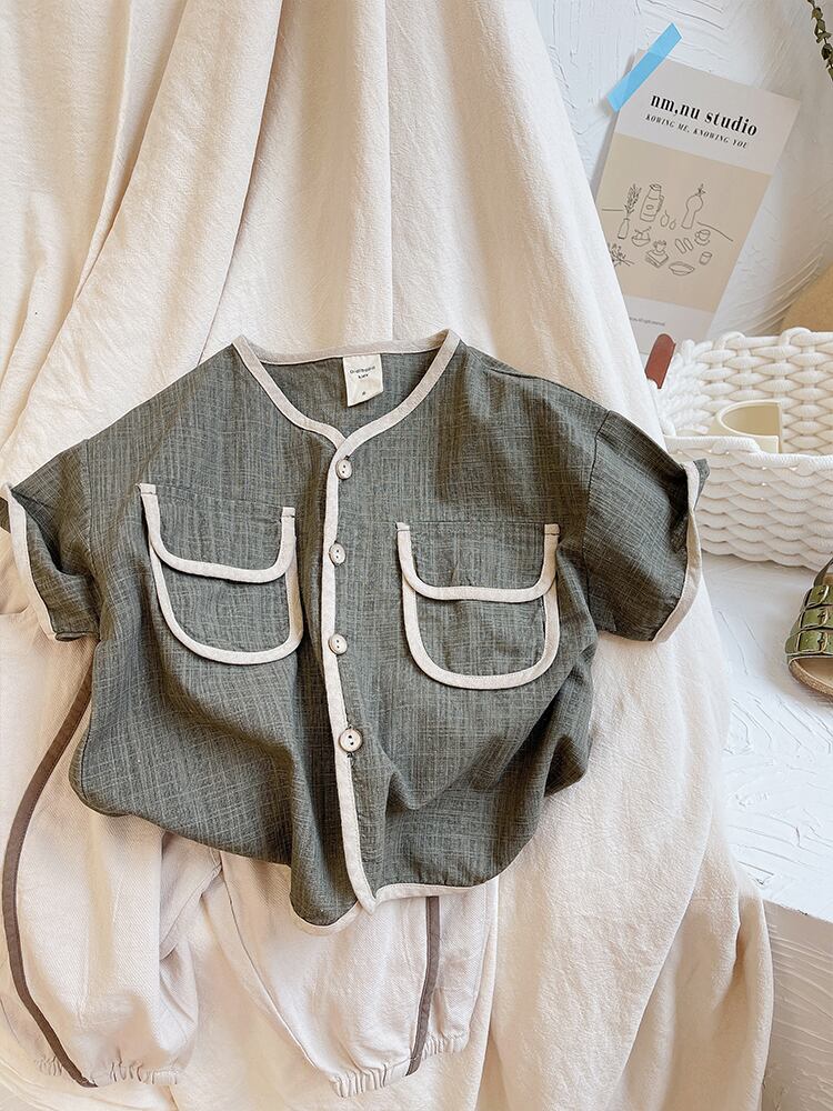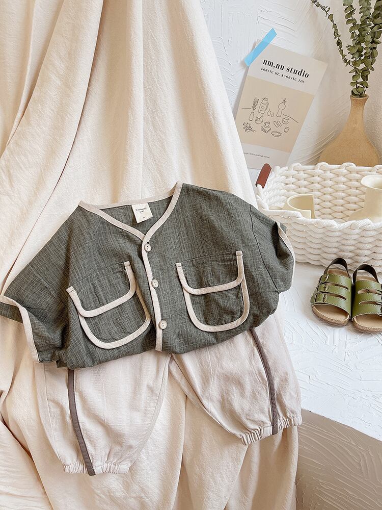 サマーTシャツ ソリッド カラーカジュアルカーディガン コットン 夏物 ソリッドカラー 4/12 春夏 SS 子供服 韓国風 mi0686314411025