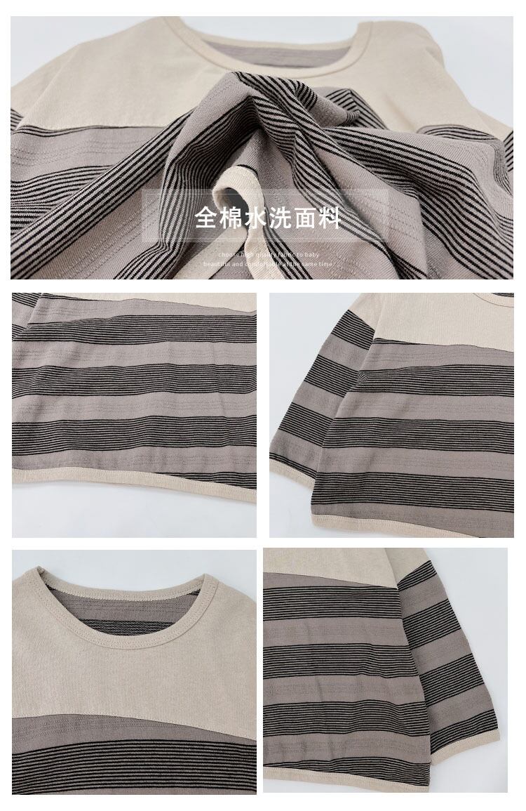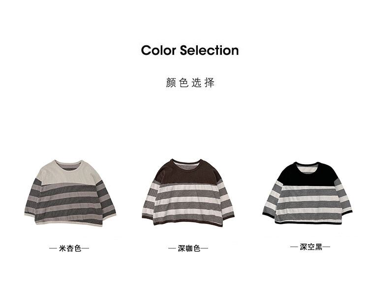 スプリングストライプTシャツ シャツ ラウンドネック コットン 春物 Oネック ステッチ 4/12 春夏 SS 子供服 韓国風 mi0697398686379