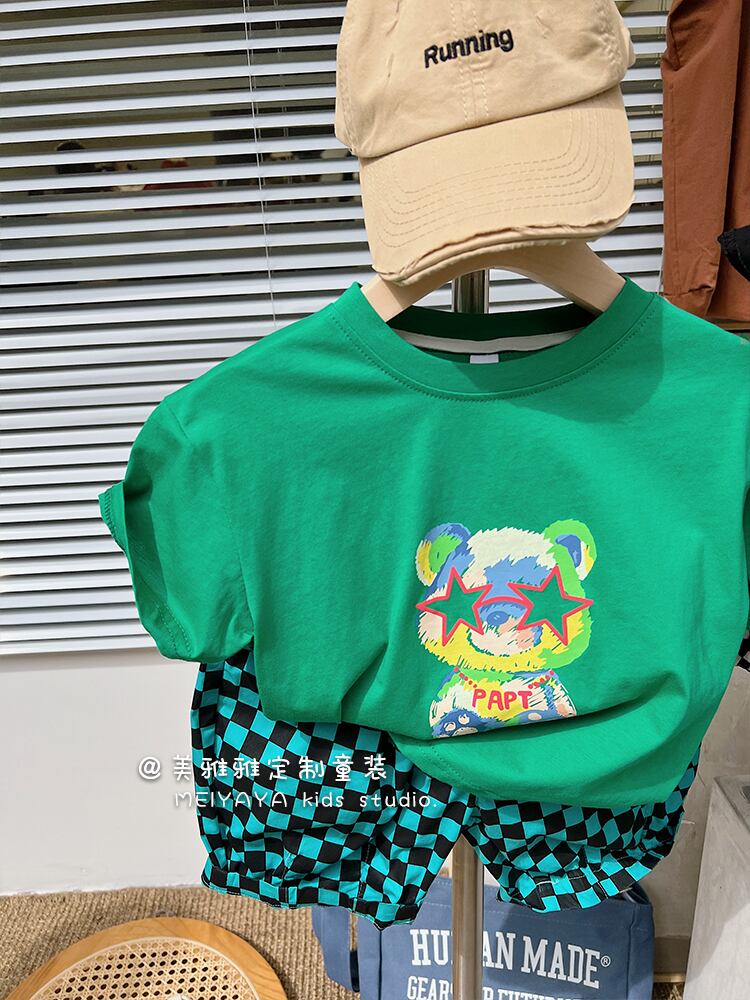 グリーンTシャツ ホワイト薄手 ストリート 4/12 春夏 SS 子供服 韓国風 mi0622876159926