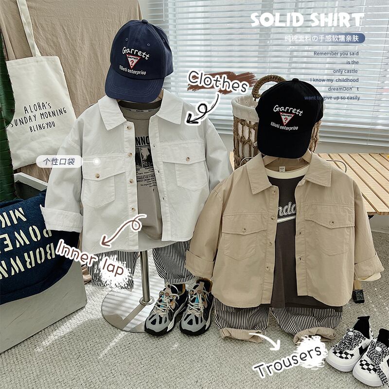 スプリングソリッド カラーシャツ ロング カーディガン 春物 ソリッドカラー 4/12 春夏 SS 子供服 韓国風 mi0680555525484