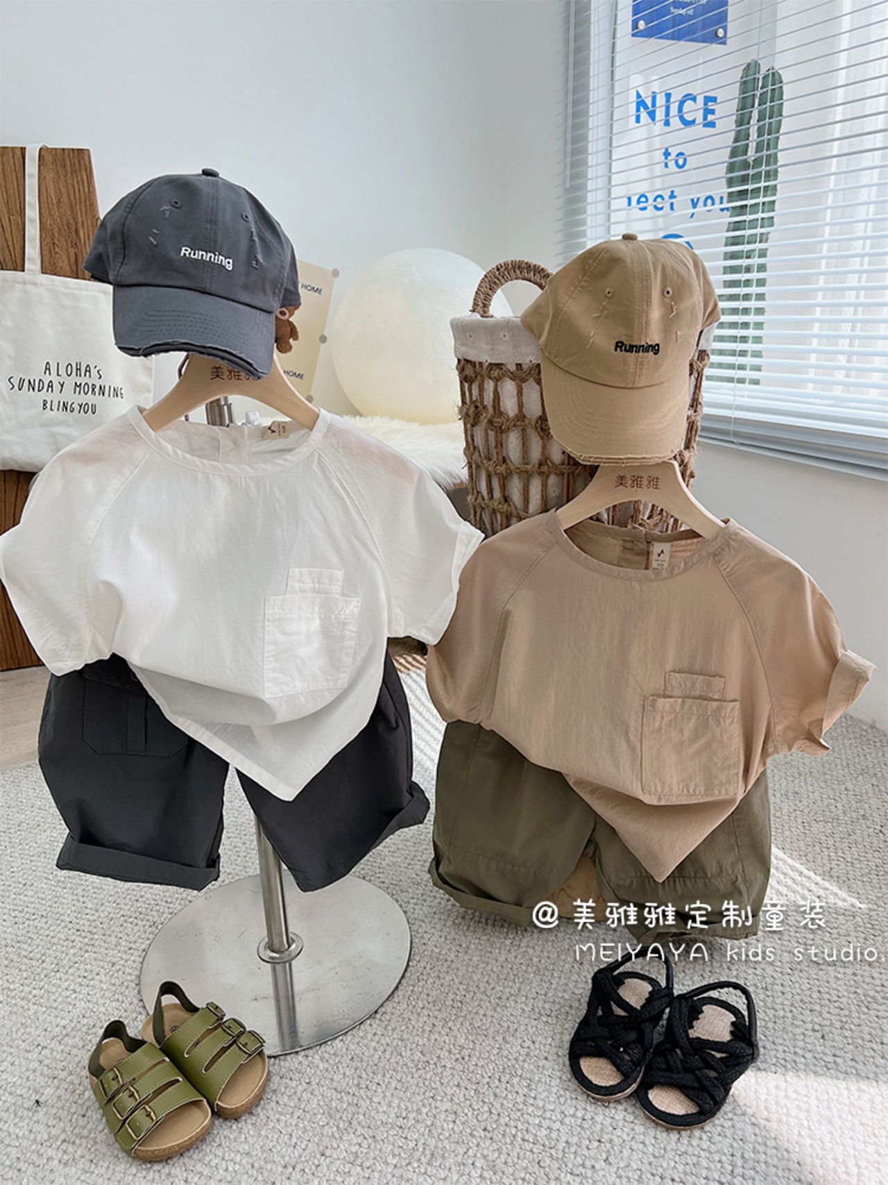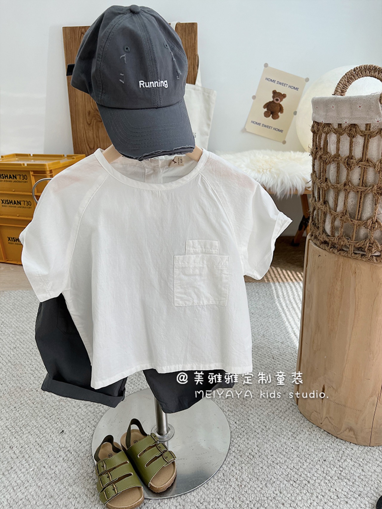 スタンダードサマースリーブTシャツ シャツ コットン レトロ 夏物 4/12 春夏 SS 子供服 韓国風 mi0681719789503