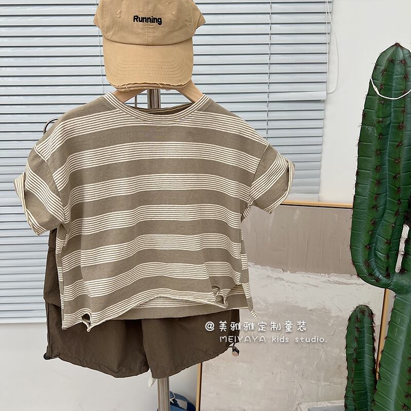ルーズストライプTシャツ レッドトップス コットン 4/12 春夏 SS 子供服 韓国風 mi0666943739493