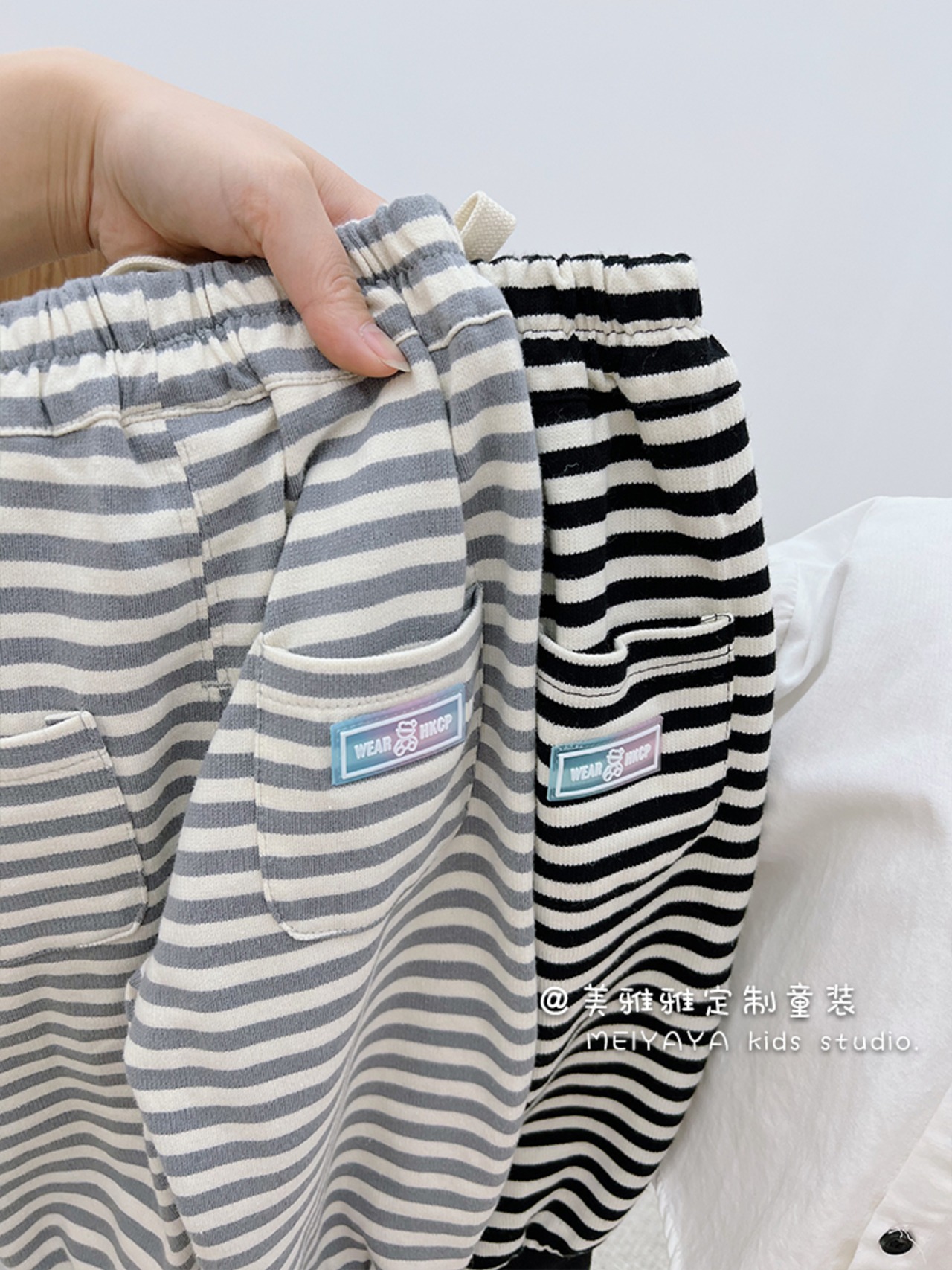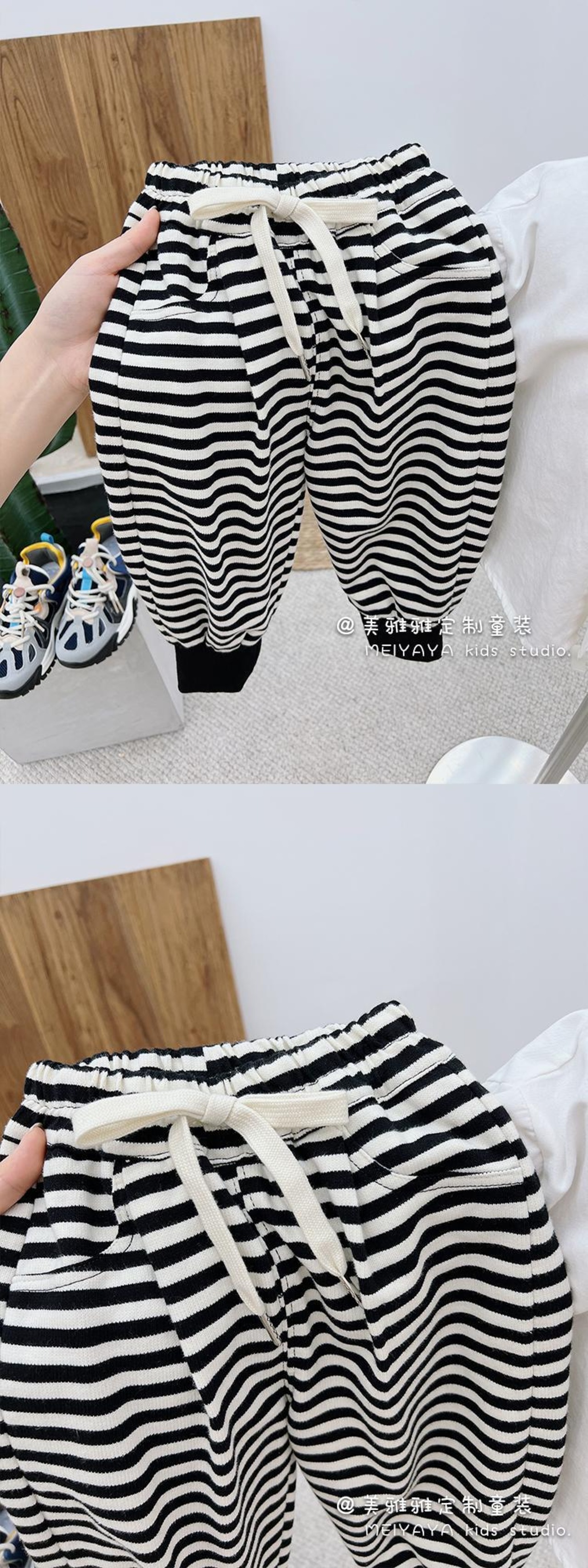ブラックホワイトストライプレギンス カジュアルパンツ ルーズスタイルスプリング 春物 4/12 春夏 SS 子供服 韓国風 mi0629105650656
