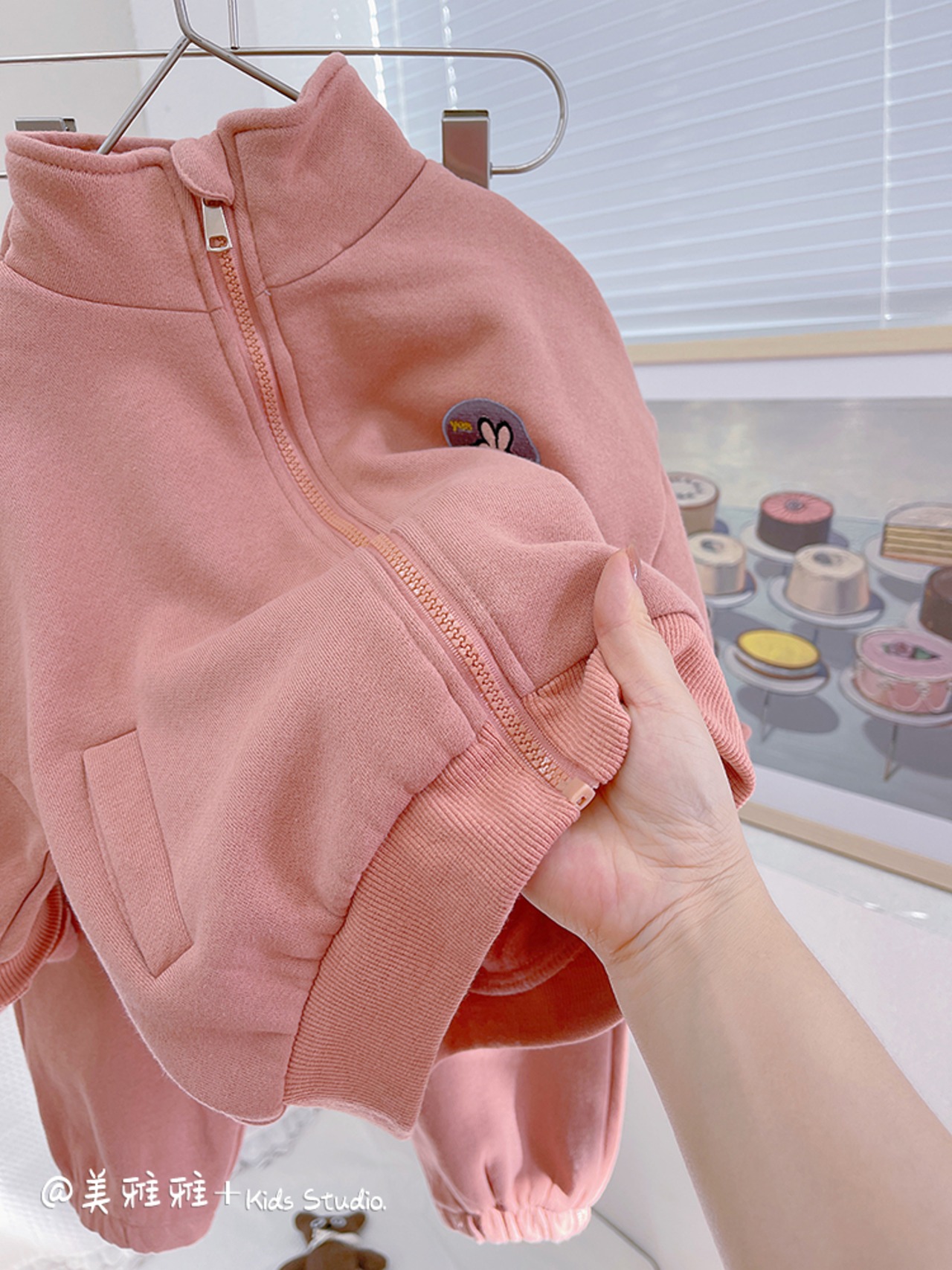 セット ジッパーシャツ スプリング薄手ベルベット レッド 刺繍 春物 4/12 春夏 SS 子供服 韓国風 mi0634732516344