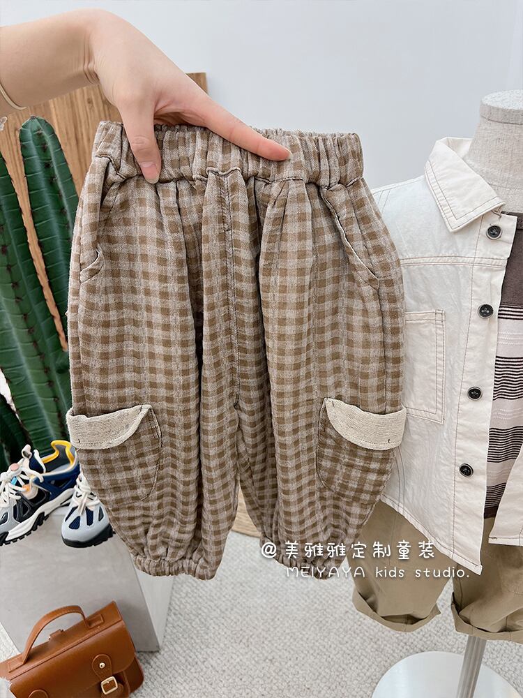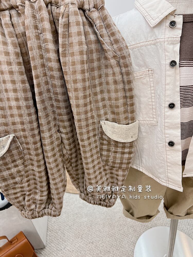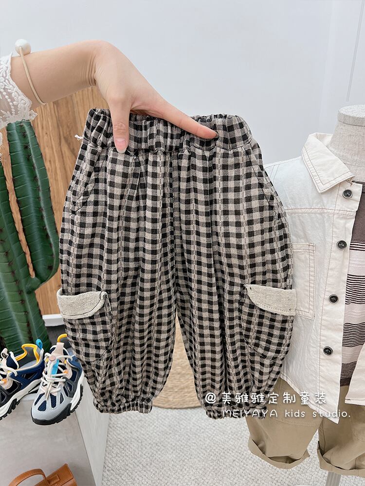 カラー格子柄スタイルルーズパンツ ショーツ ブルマー 4/12 春夏 SS 子供服 韓国風 mi0636604308081