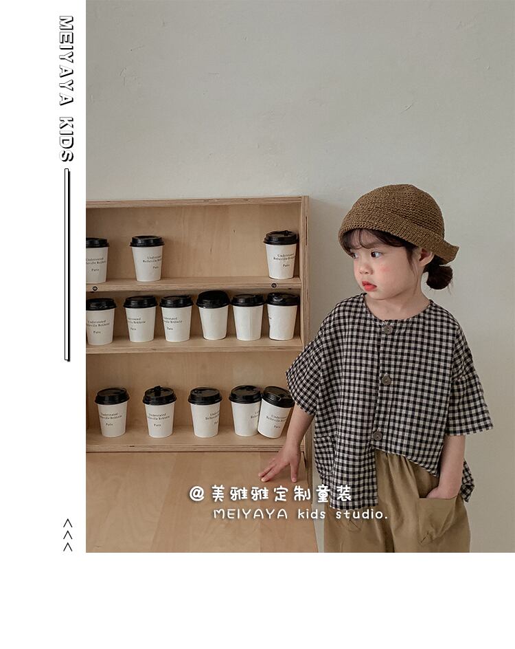 格子柄シャツ 薄手サマースタイルホワイトトップス 夏物 4/12 春夏 SS 子供服 韓国風 mi0698959902984