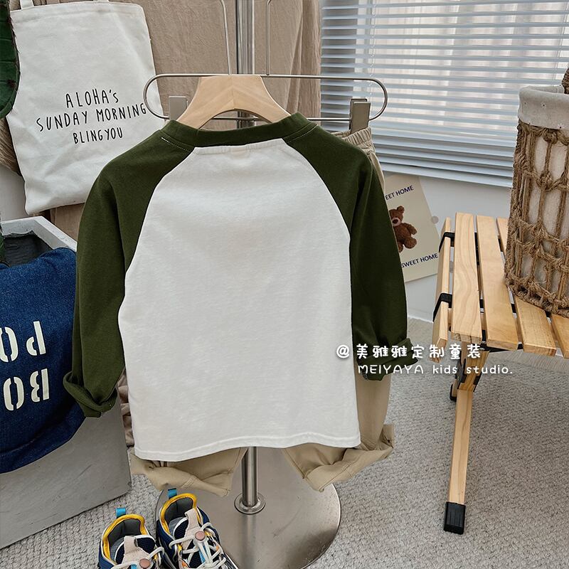 スプリングルーズラウンドネックスリーブTシャツ カラー 春物 Oネック 4/12 春夏 SS 子供服 韓国風 mi0616824716104