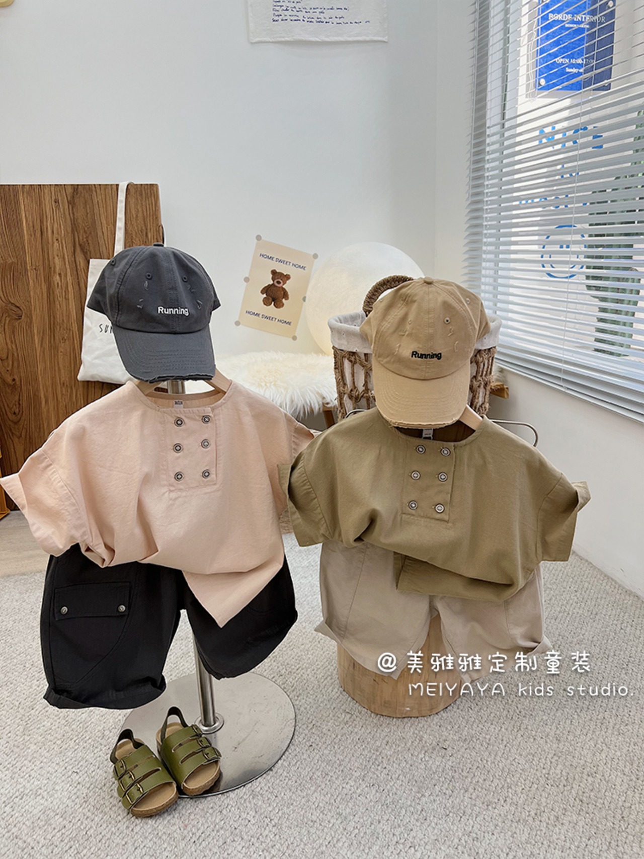スタンダードカラーサマーボタンTシャツ コットン レトロ 夏物 4/12 春夏 SS 子供服 韓国風 mi0642673026168