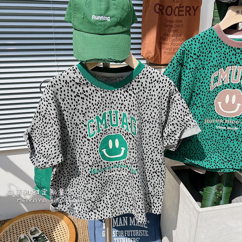 スタイルレオパードプリント柄ラウンドネックシャツ サマー 夏物 Oネック 4/12 春夏 SS 子供服 韓国風 mi0680859479767