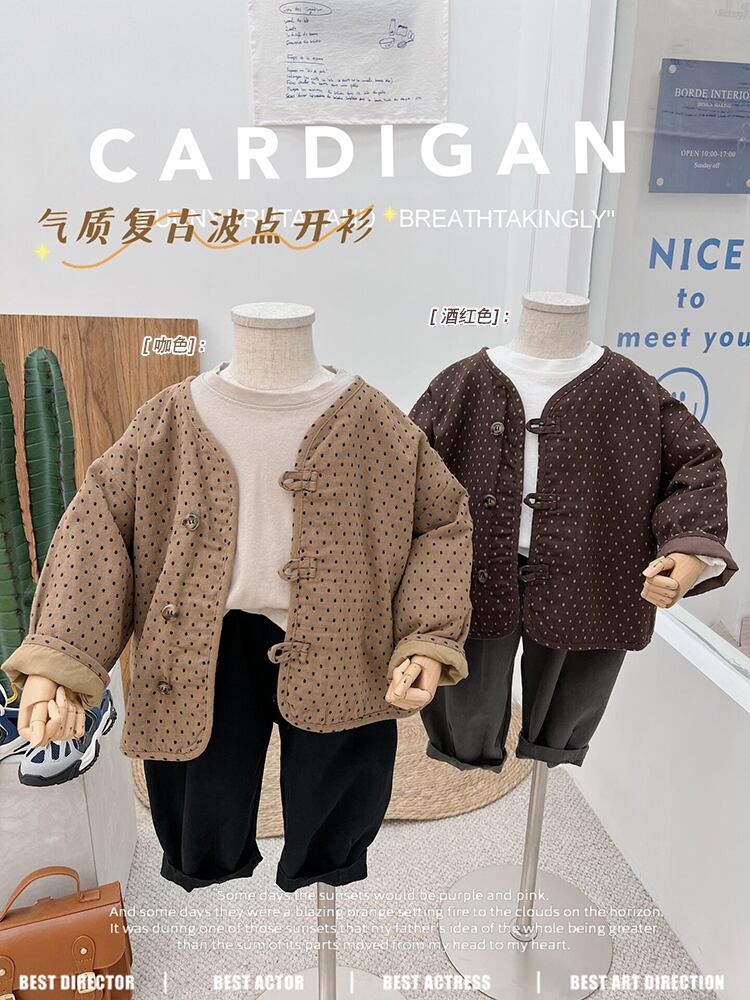 スタンダード水玉ジャケット スタイルラウンドネックトップス レトロ カーディガン Oネック 4/12 春夏 SS 子供服 韓国風 mi0675705519324