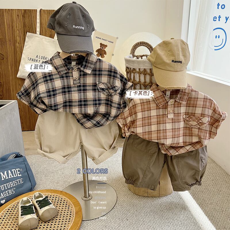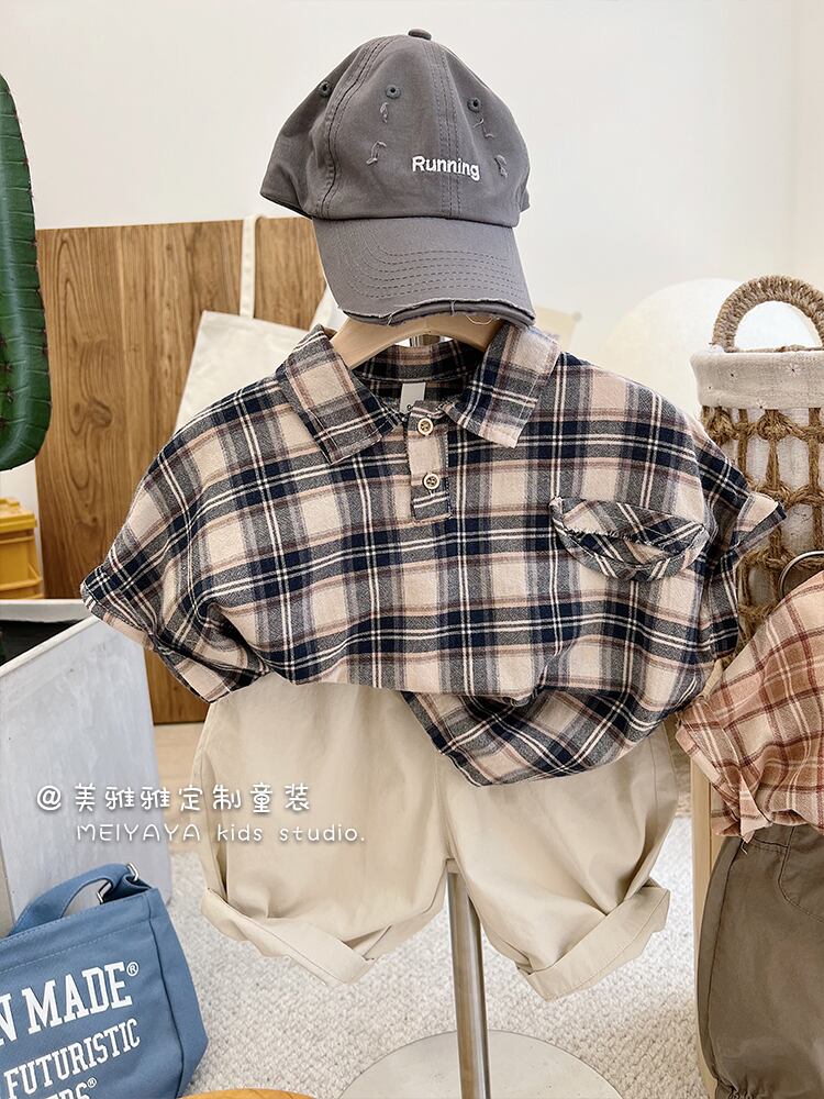 格子柄プルオーバー シャツ サマー薄手 コットン 夏物 4/12 春夏 SS 子供服 韓国風 mi0637165216422