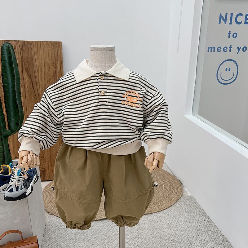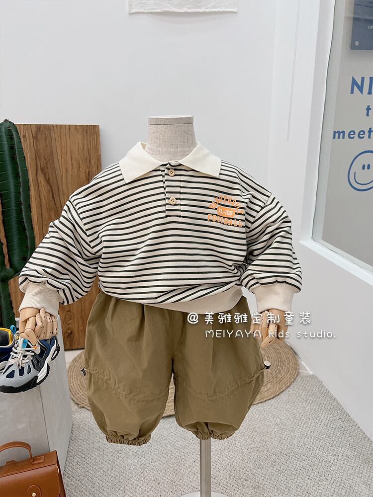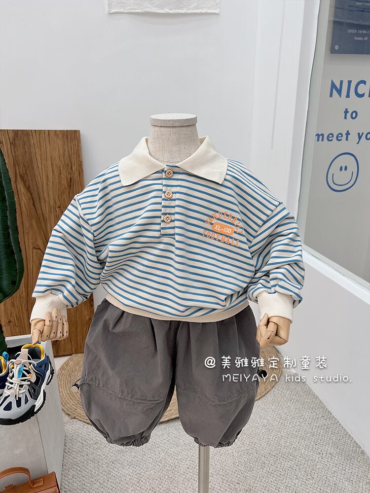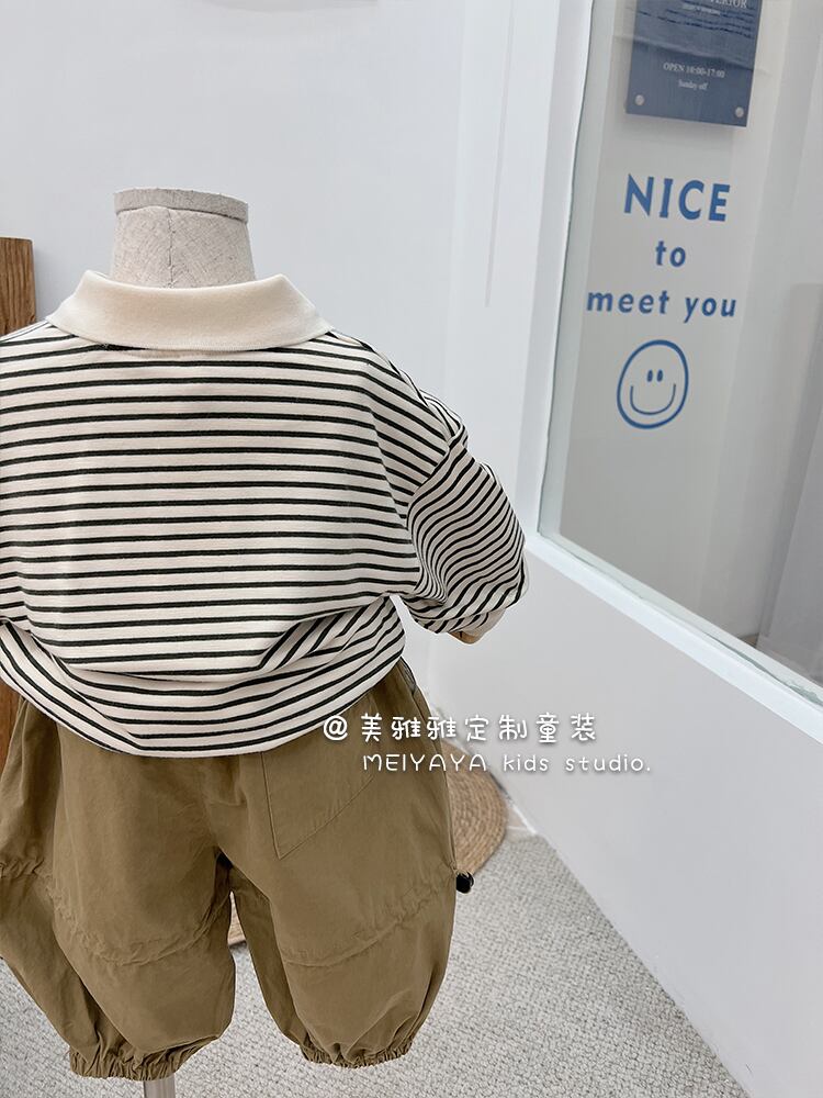 ルーズストライプシャツ スプリングスタイルTシャツ ロング 春物 4/12 春夏 SS 子供服 韓国風 mi0610619815490