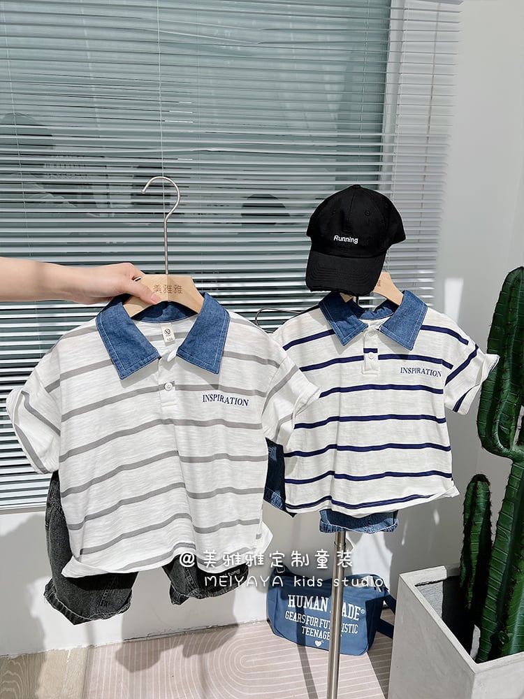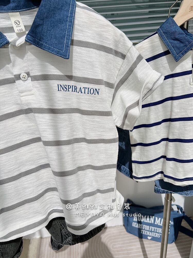 薄手ストライプカジュアルTシャツ ステッチ 4/12 春夏 SS 子供服 韓国風 mi0650045705604