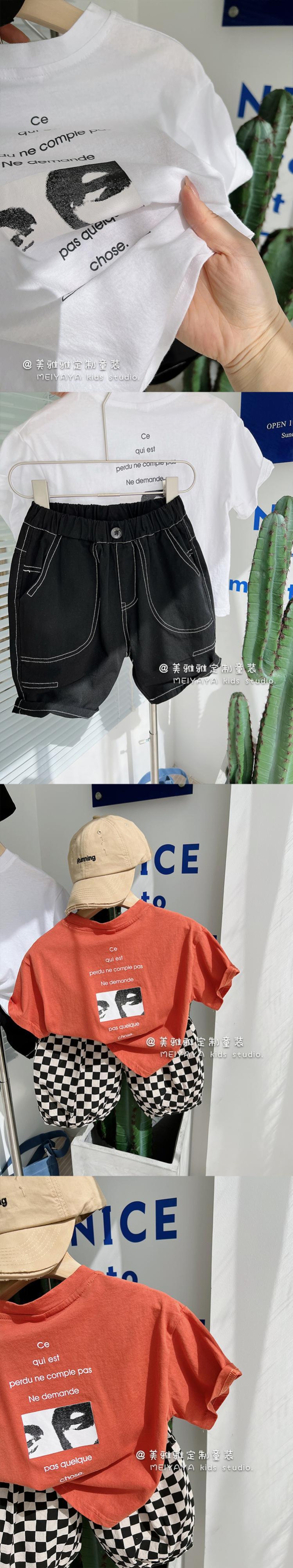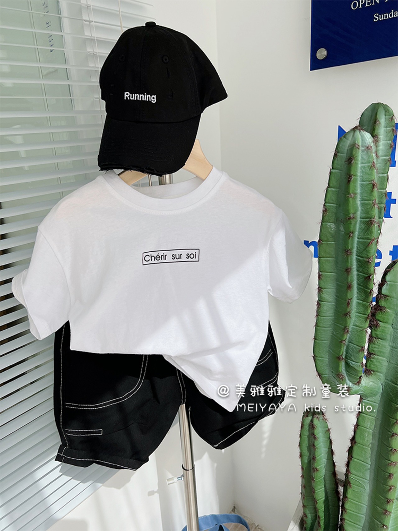 サマーホワイトプリントラウンドネックルーズTシャツ 夏物 Oネック 4/12 春夏 SS 子供服 韓国風 mi0691511170841