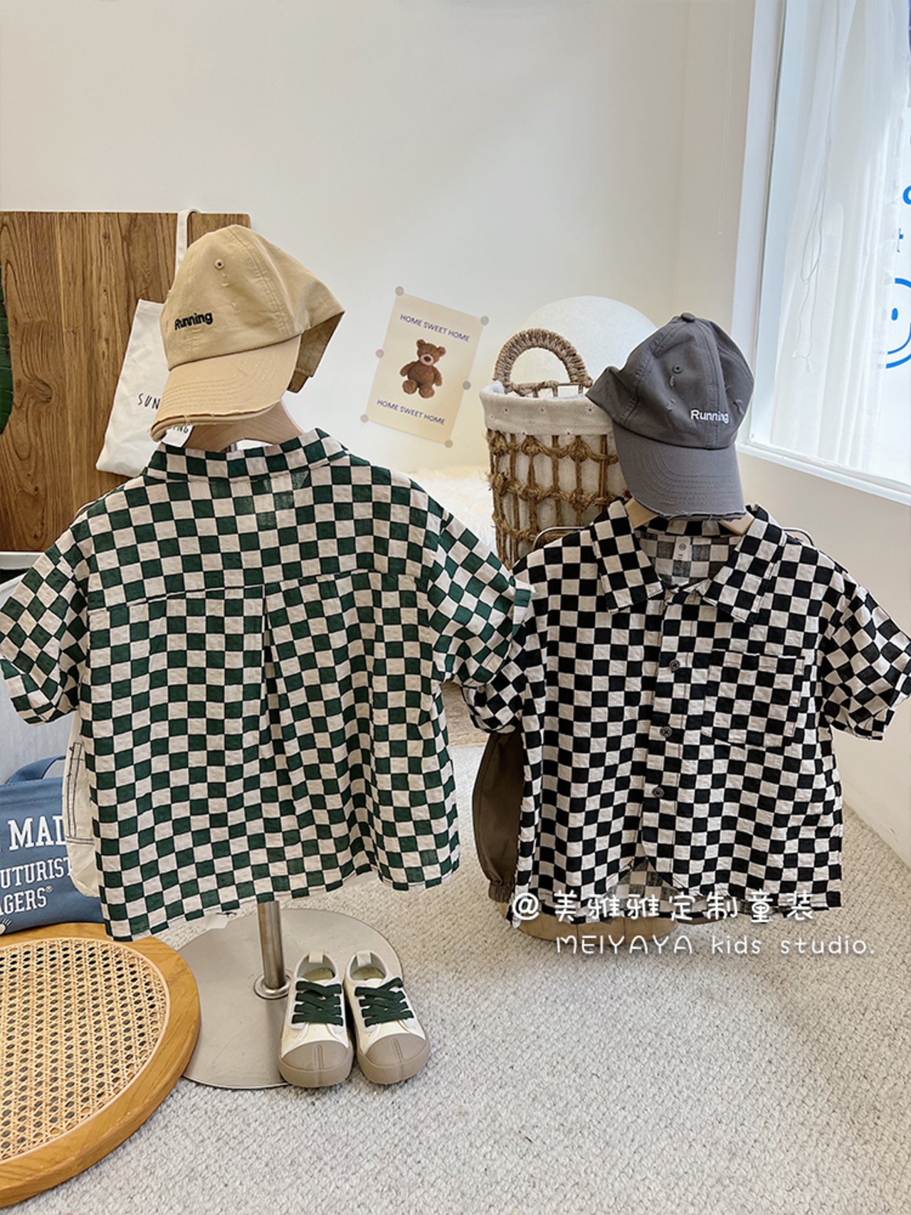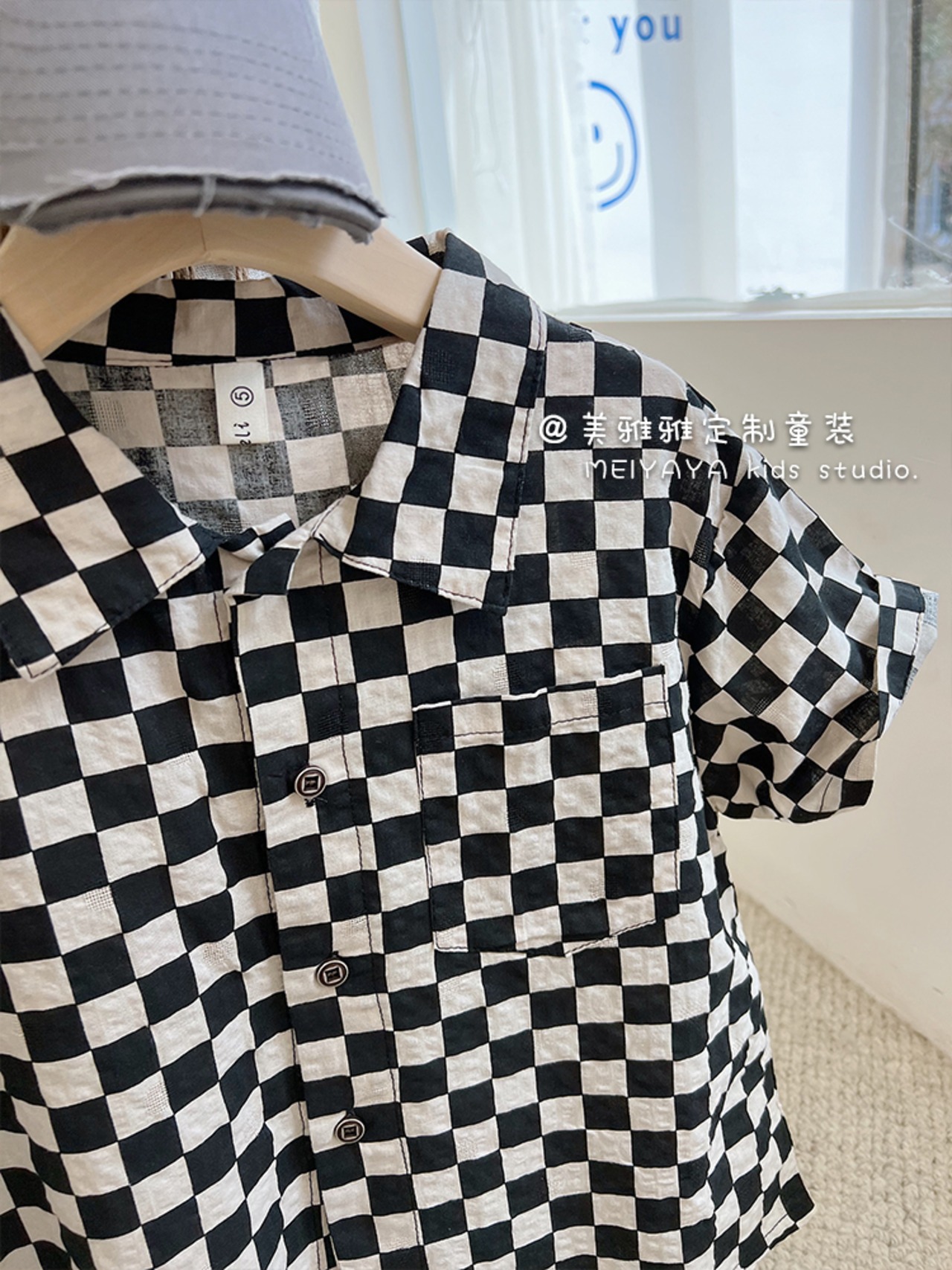 カジュアルブラックホワイトシャツ薄手 レッド コットン 4/12 春夏 SS 子供服 韓国風 mi0681055569014