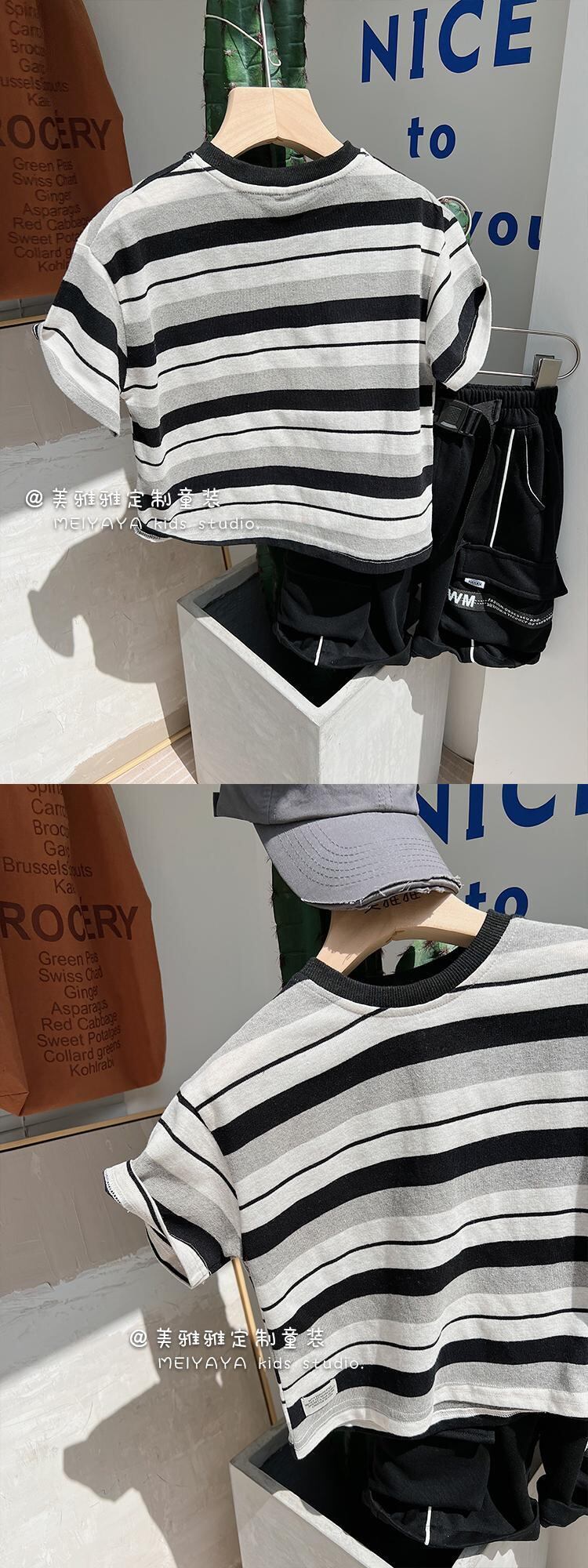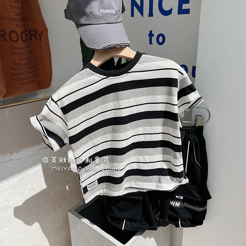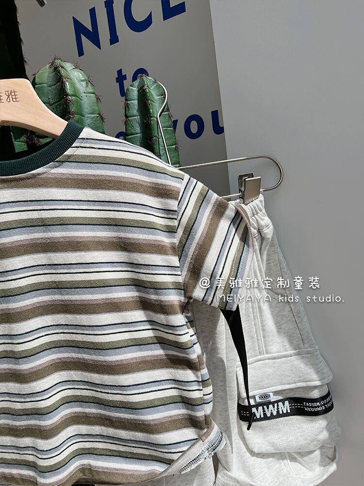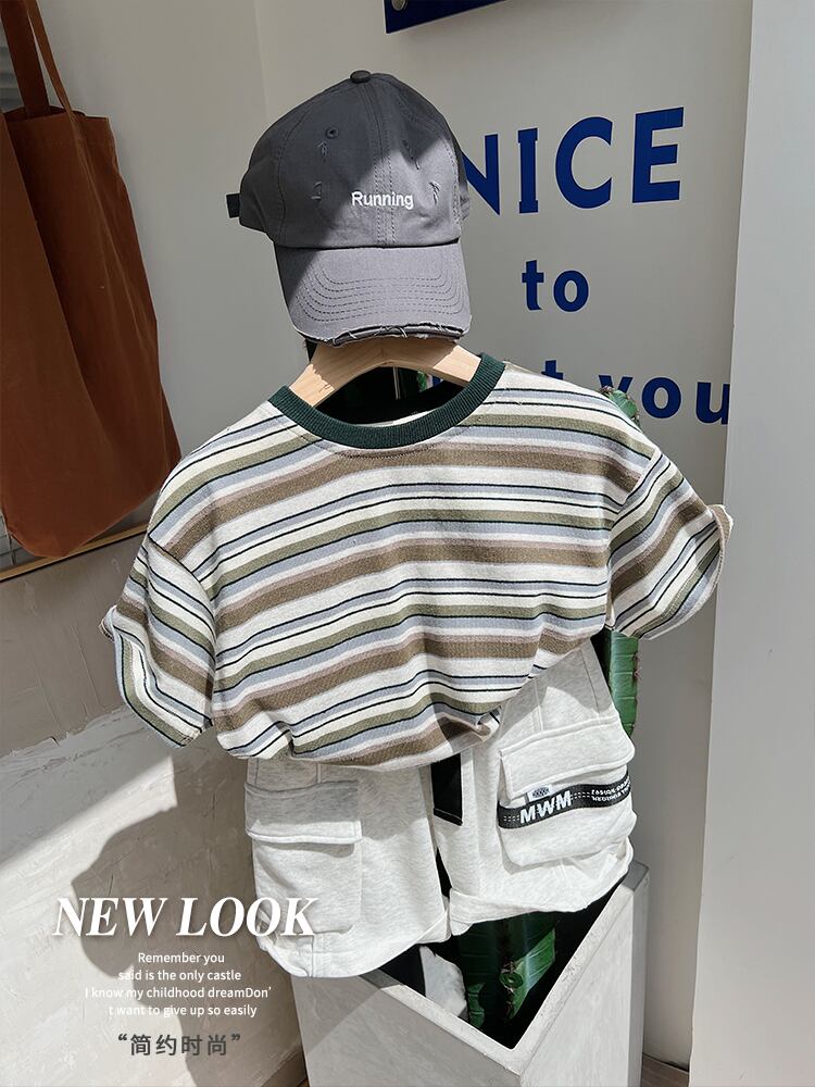 カラーストライプスタンダードTシャツ 薄手サマー レトロ 夏物 4/12 春夏 SS 子供服 韓国風 mi0654154893643