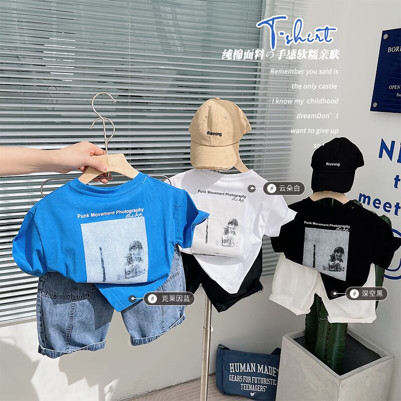 サマープリントラウンドネックシャツ 夏物 Oネック 4/12 春夏 SS 子供服 韓国風 mi0634673735389