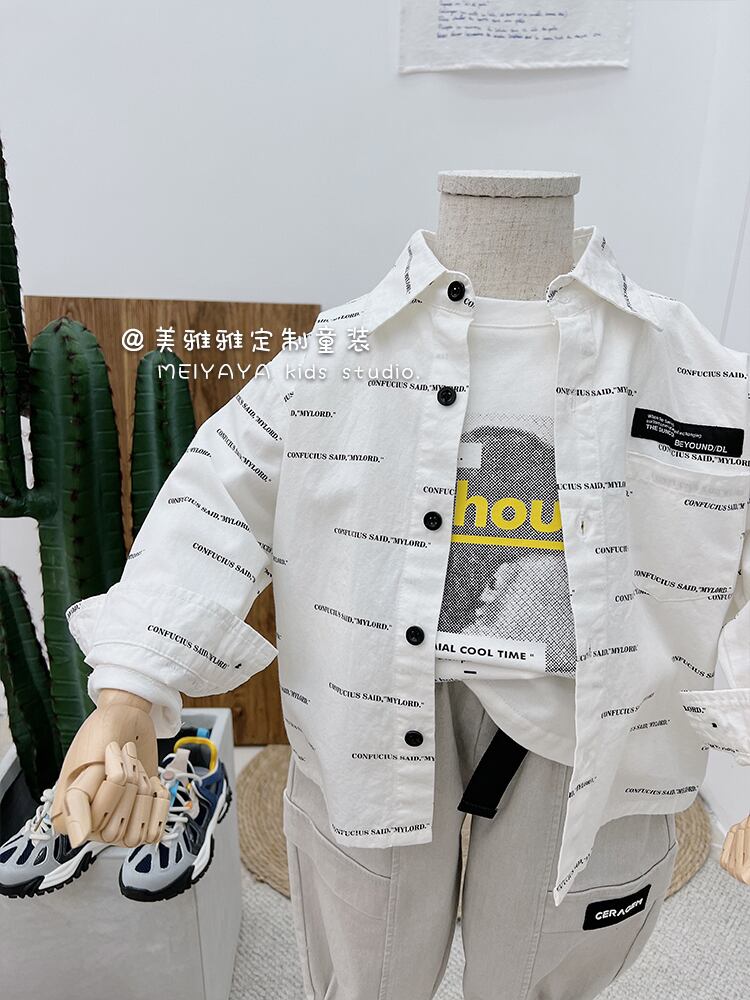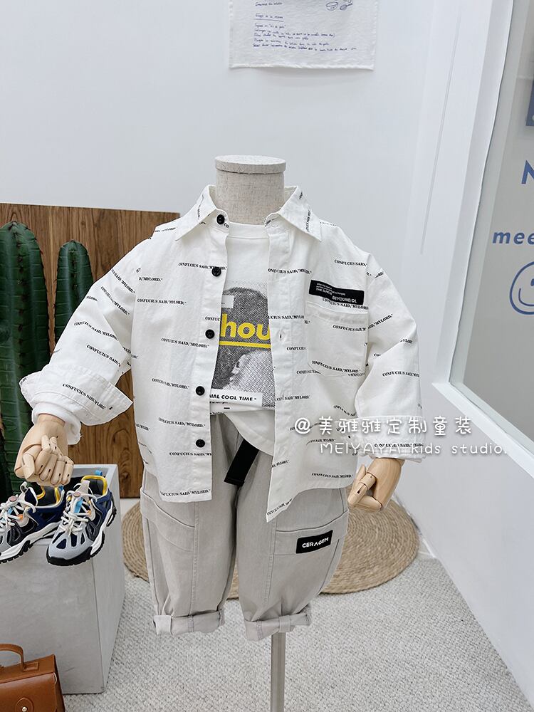 プリント柄スタイルシャツ ホワイトポケットカーディガンスプリング ロング 春物 4/12 春夏 SS 子供服 韓国風 mi0661689605714
