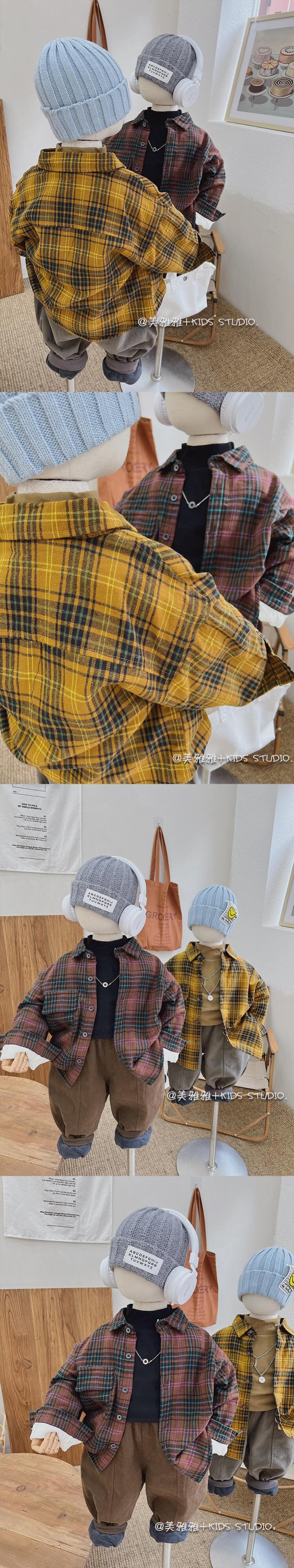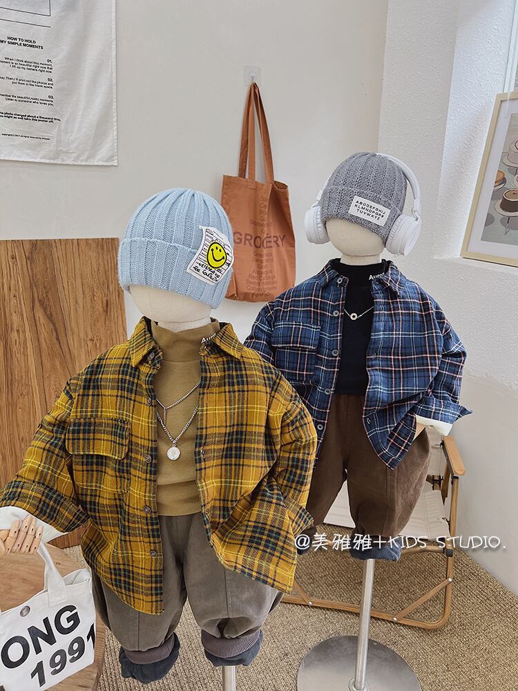 スプリングウィンターイエロー格子柄ベルベットシャツ ジャケット 春物 冬物 4/12 春夏 SS 子供服 韓国風 mi0653742639646