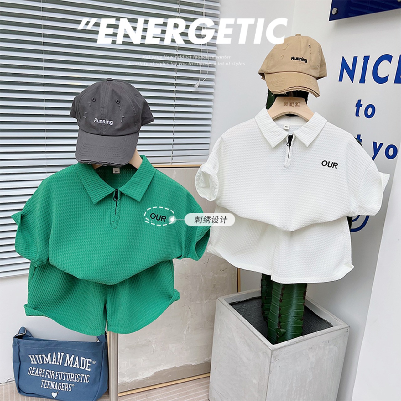 サマーグリーンショーツ セット レディース 夏物 ブルマー 4/12 春夏 SS 子供服 韓国風 mi065298891274