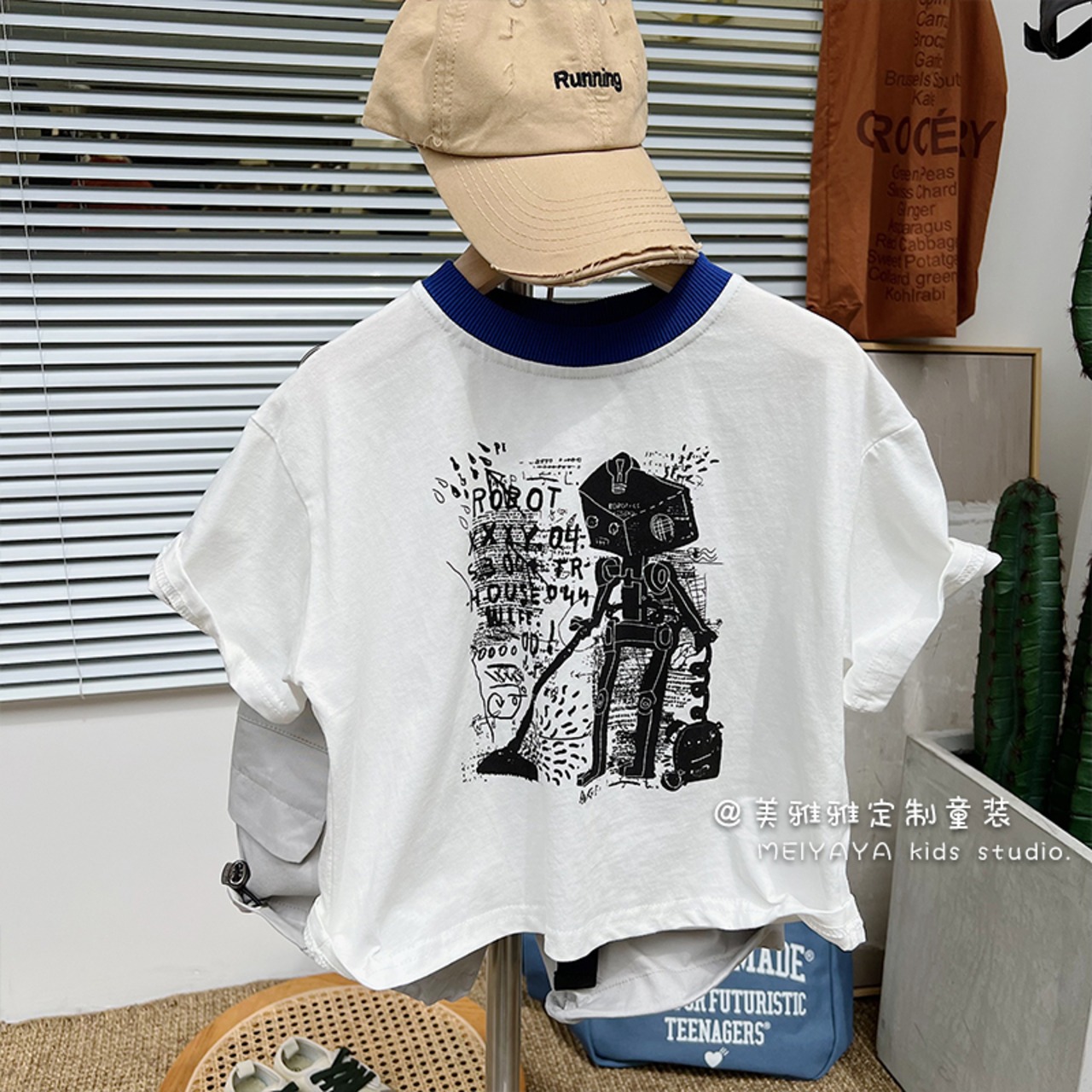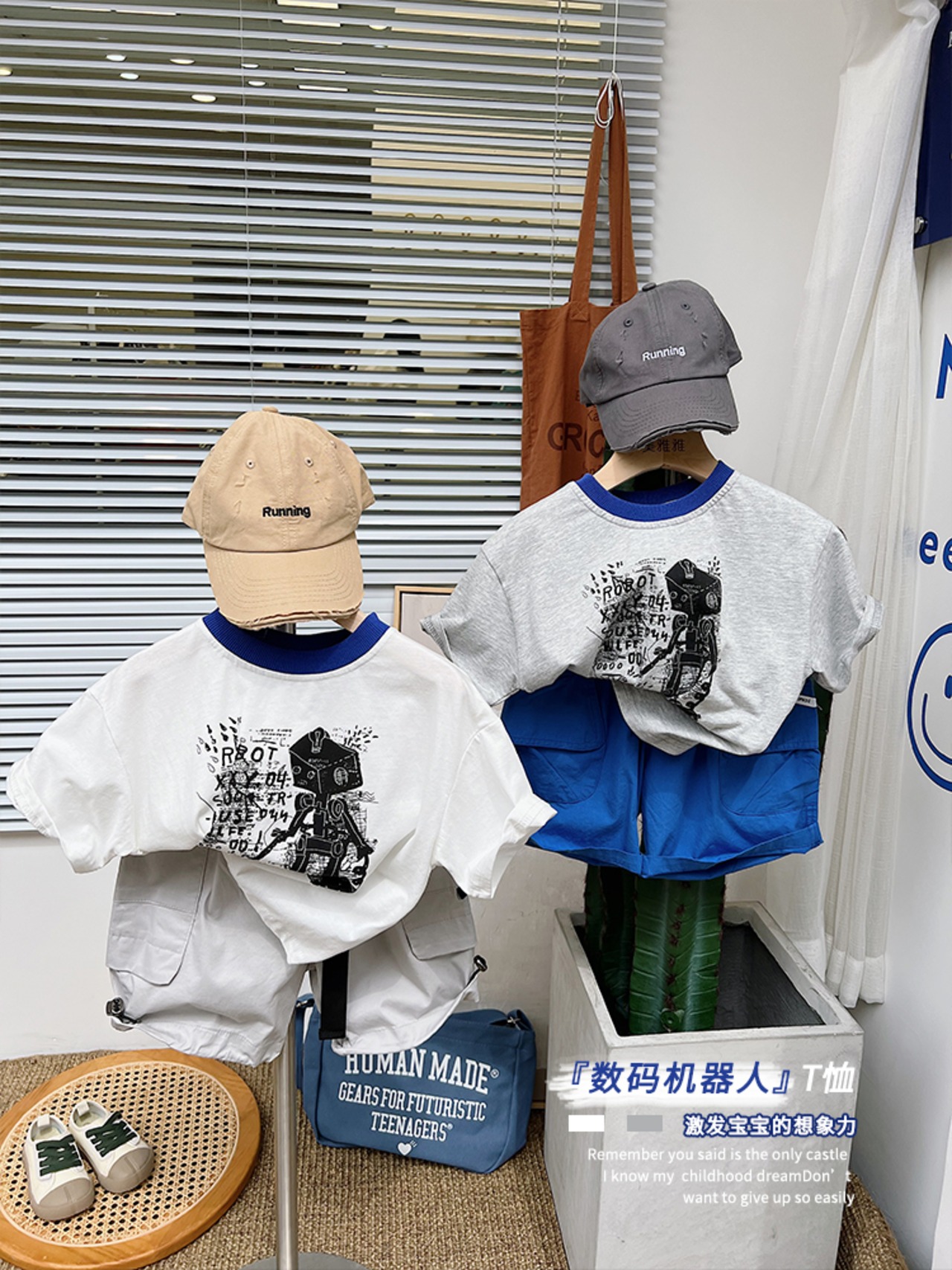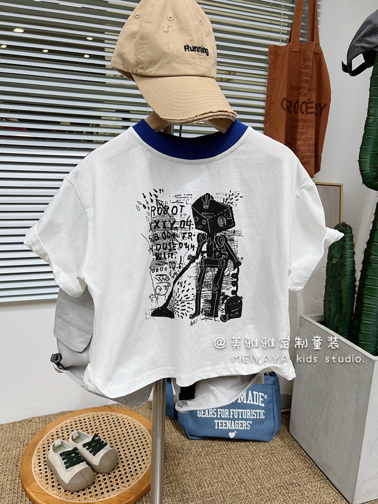 ラウンドネックカラールーズトップス シャツ ストリート Oネック Tシャツ 4/12 春夏 SS 子供服 韓国風 mi0635266404955