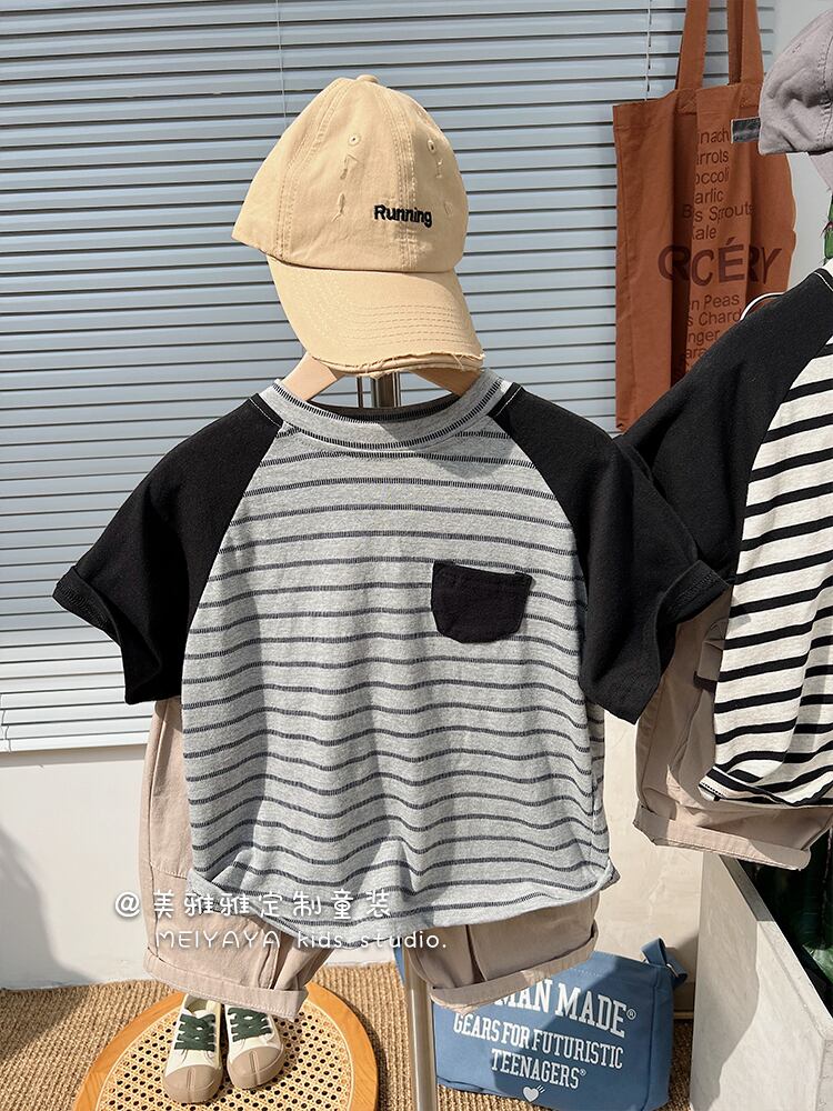 Tシャツ ストライプ薄手 4/12 春夏 SS 子供服 韓国風 mi0664810662898