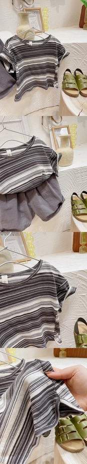 スタイルストライプスタンダード薄手Tシャツ トップス サマー レトロ 夏物 4/12 春夏 SS 子供服 韓国風 mi0678840209134