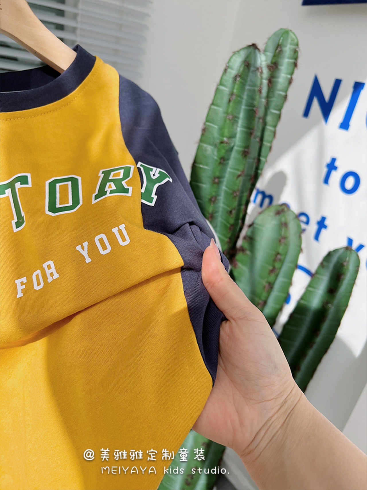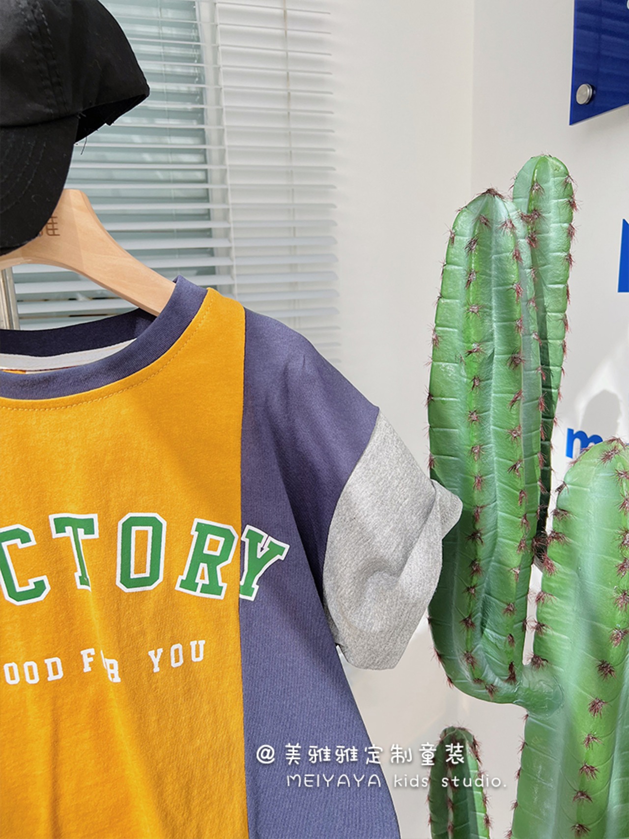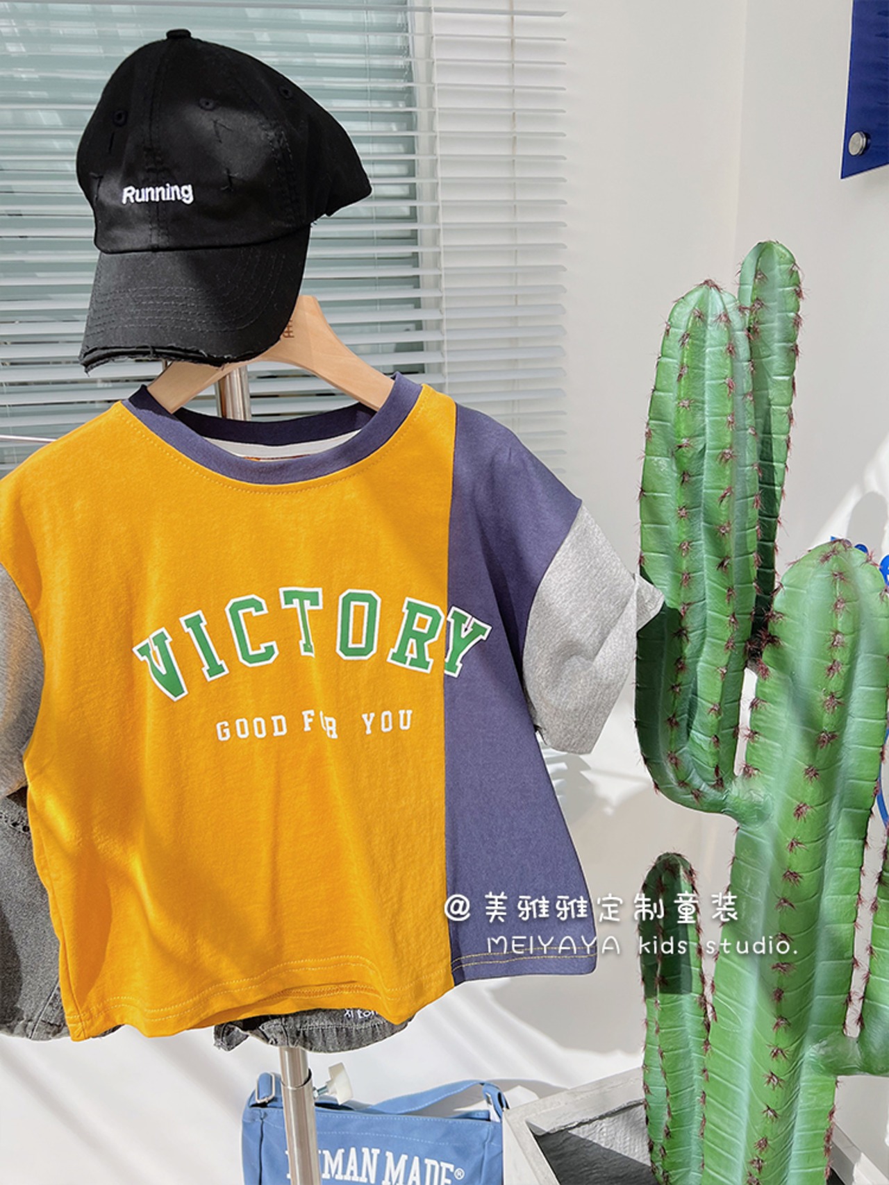 カラーサマールーズTシャツ ラウンドネック半袖スリーブ ショート コットン ハーフスリーブ 夏物 Oネック 4/12 春夏 SS 子供服 韓国風 mi0622382572555