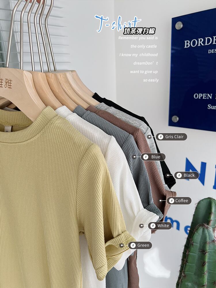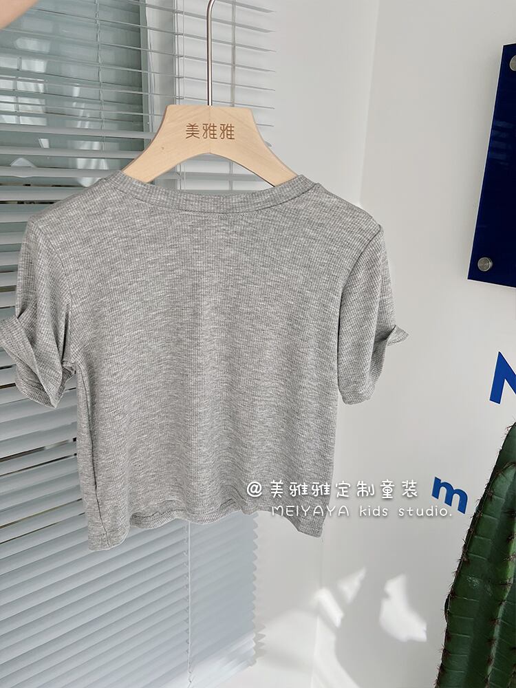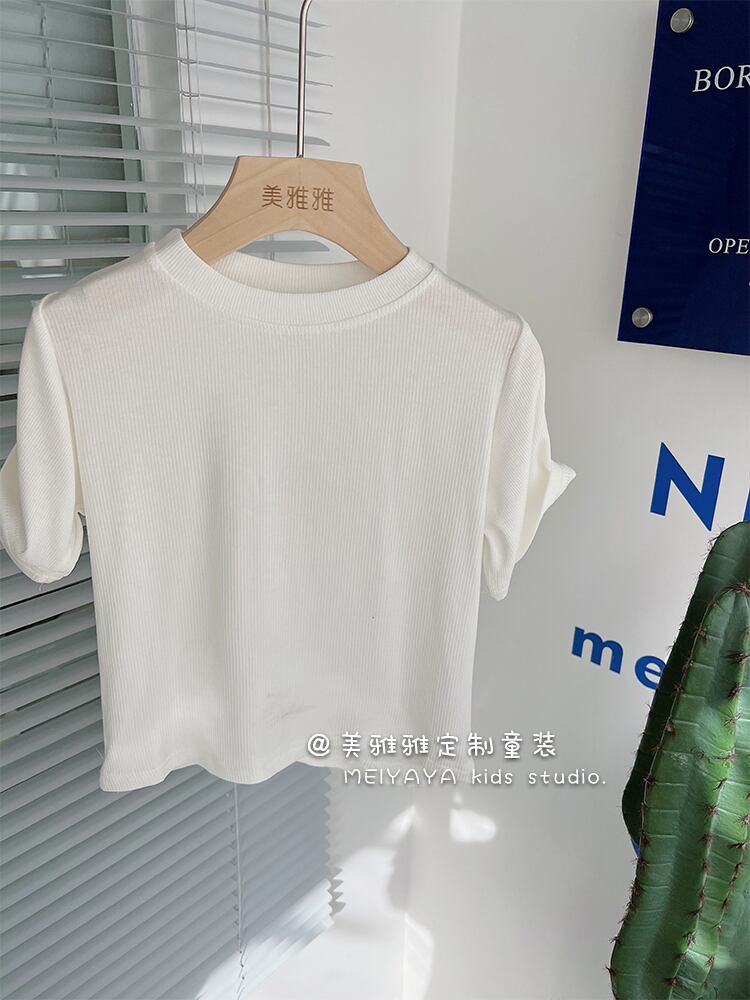 サマーストライプシャツ レディースソリッド カラー コットン 夏物 ソリッドカラー 4/12 春夏 SS 子供服 韓国風 mi0665092848845