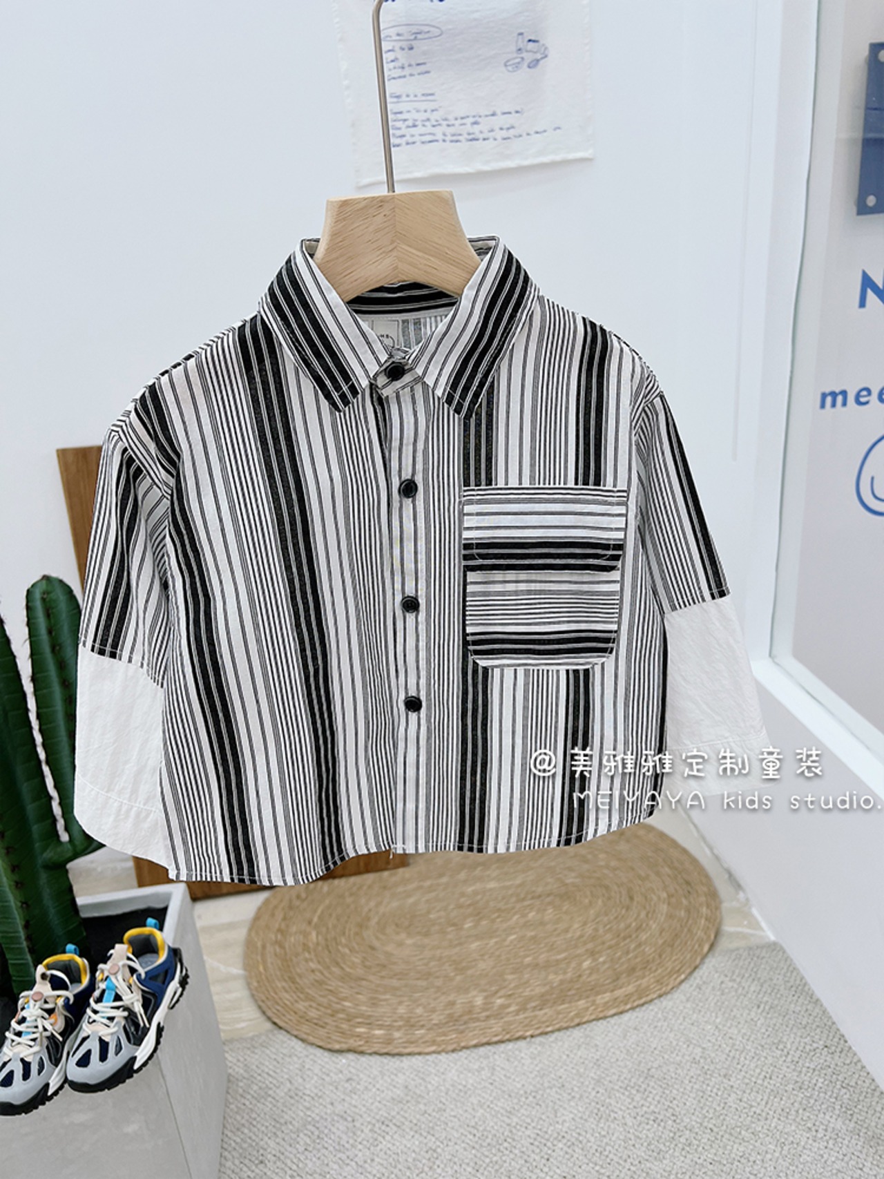 ストライプシャツ カーディガンジャケット 薄手 ストリート ステッチ 4/12 春夏 SS 子供服 韓国風 mi0653807137269