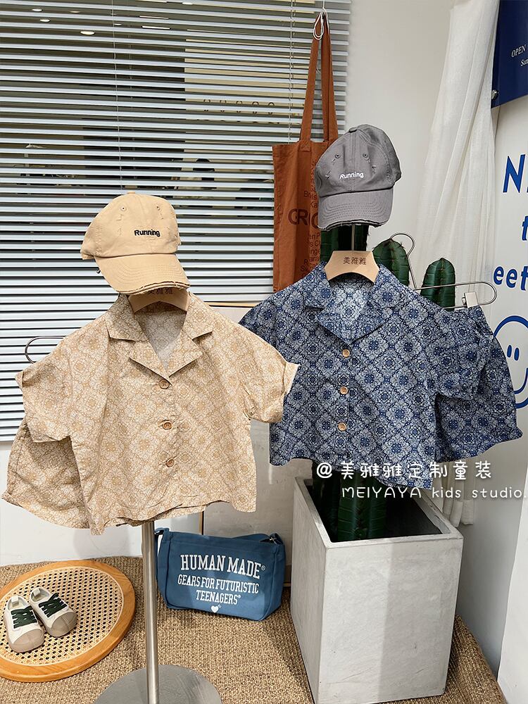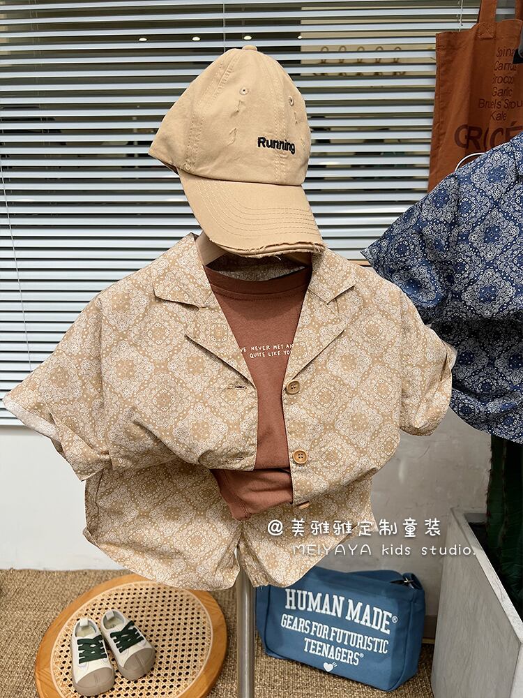 サマースタンダードパターンショーツ セット スタイル レトロ ストリート 夏物 ブルマー 4/12 春夏 SS 子供服 韓国風 mi0692173429318