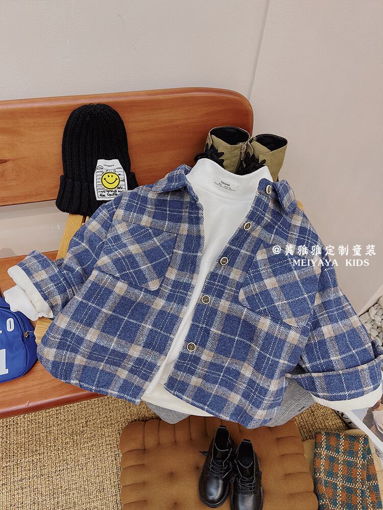 スプリングベルベット格子柄シャツ ジャケット 春物 4/12 春夏 SS 子供服 韓国風 mi0668791782476