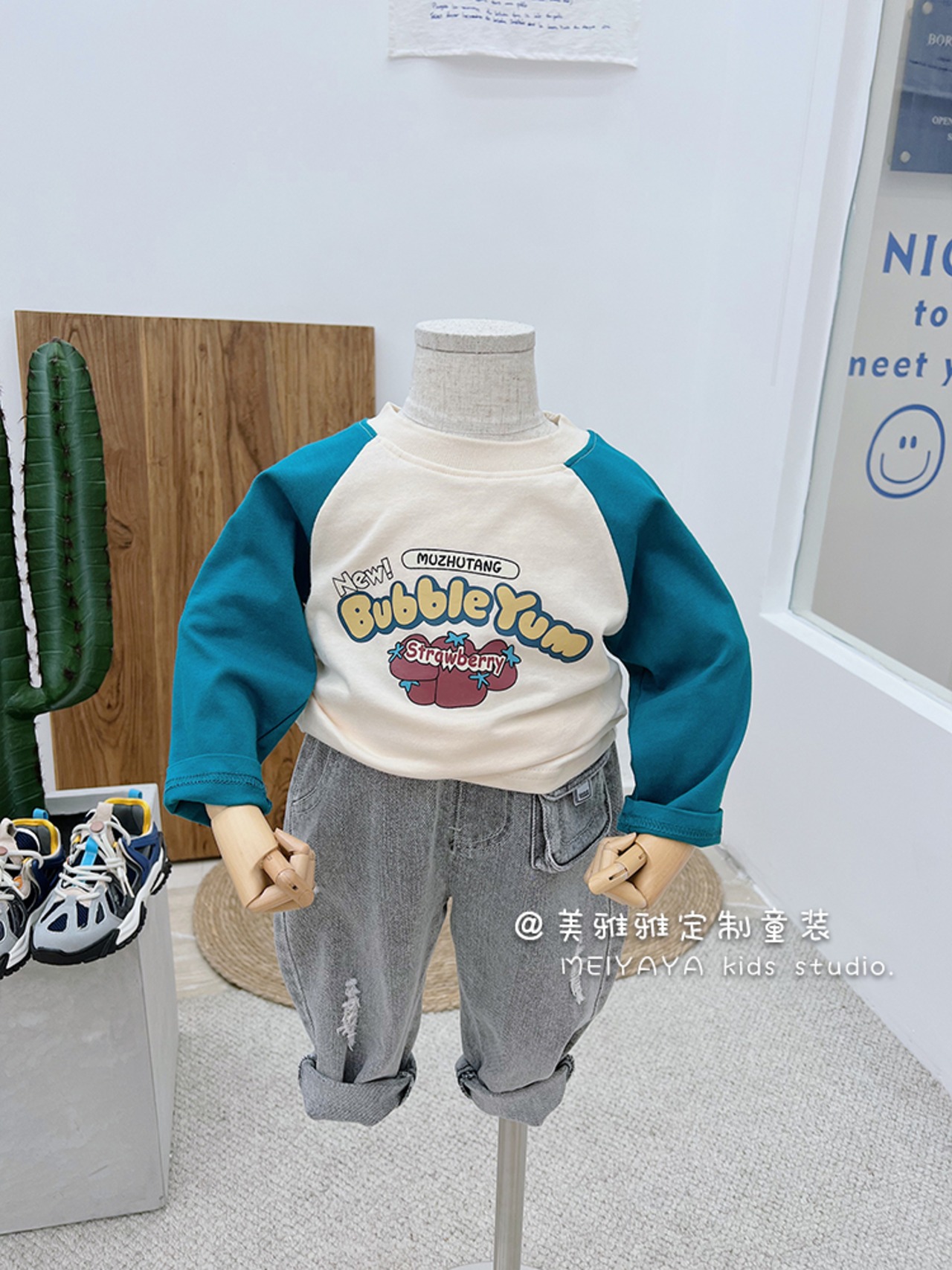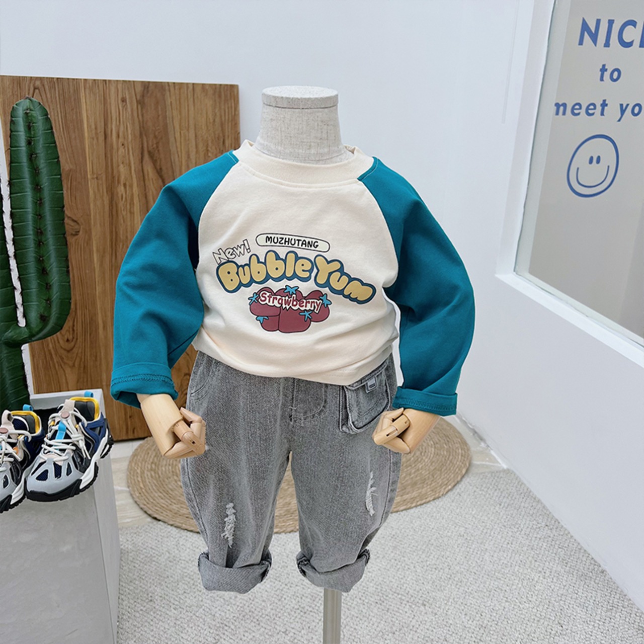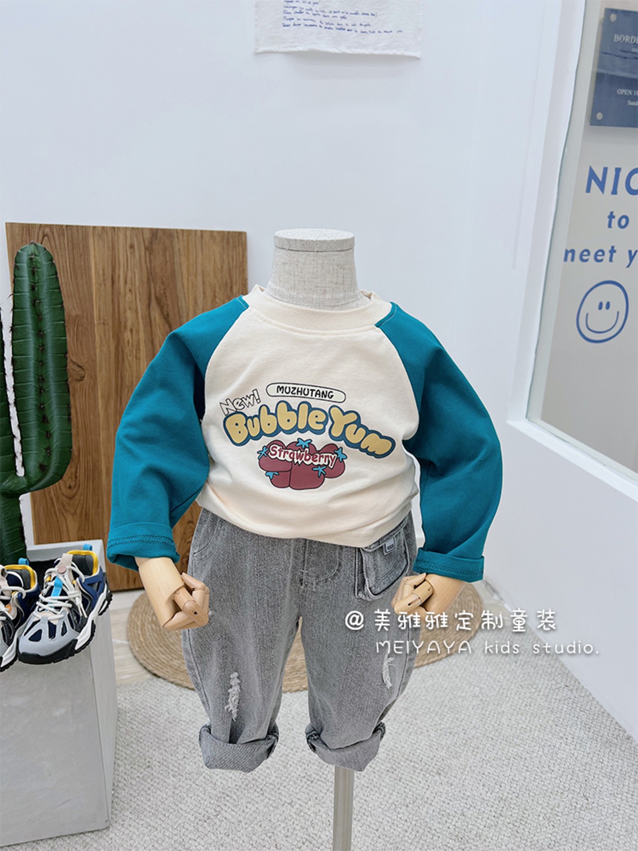 スプリングブループリントプルオーバー シャツ 春物 ステッチ 4/12 春夏 SS 子供服 韓国風 mi0612792801183