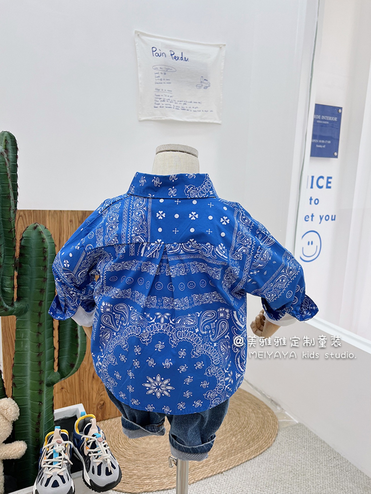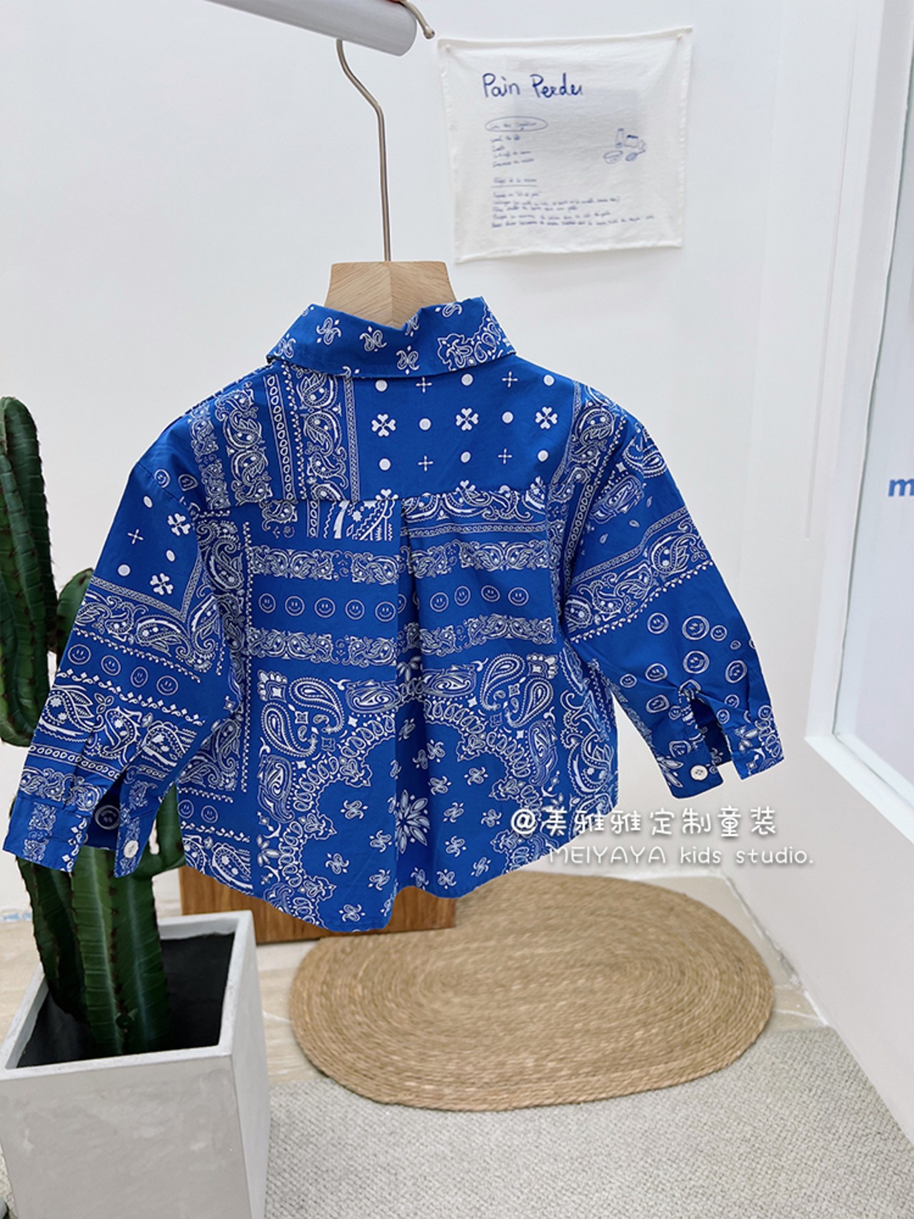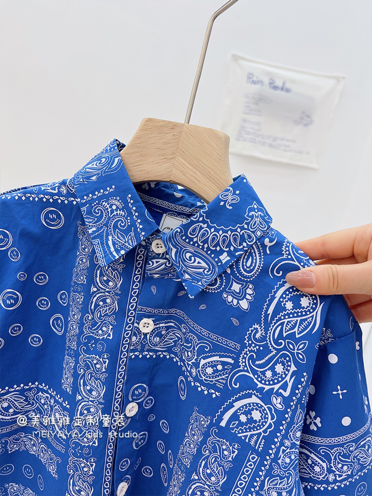 ホワイトブルーレッドスタンダードパターンシャツ ジャケット スプリング レトロ 春物 4/12 春夏 SS 子供服 韓国風 mi0612291022019