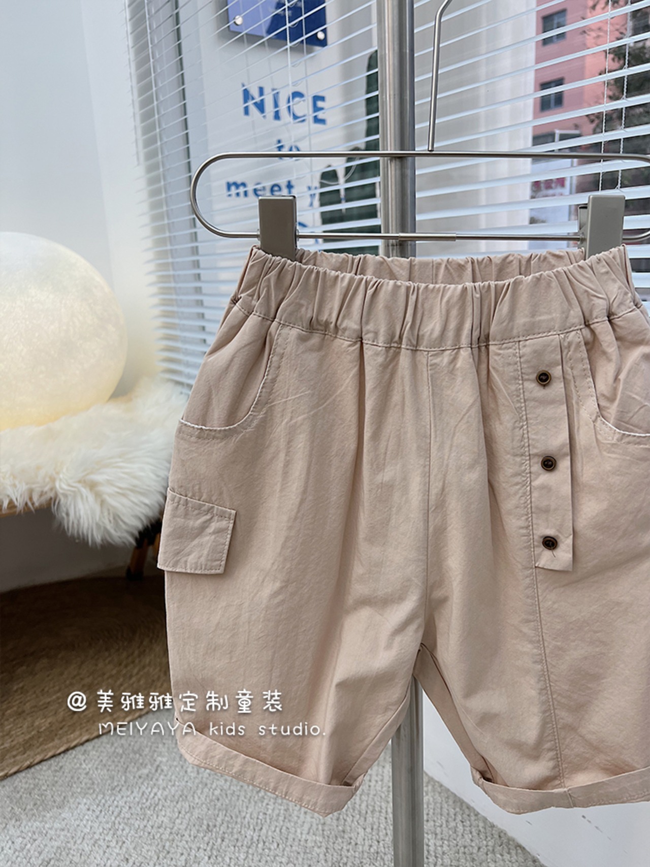 サマーイエロールーズショーツ ポケットパンツ 夏物 ブルマー ステッチ 4/12 春夏 SS 子供服 韓国風 mi0685663133000