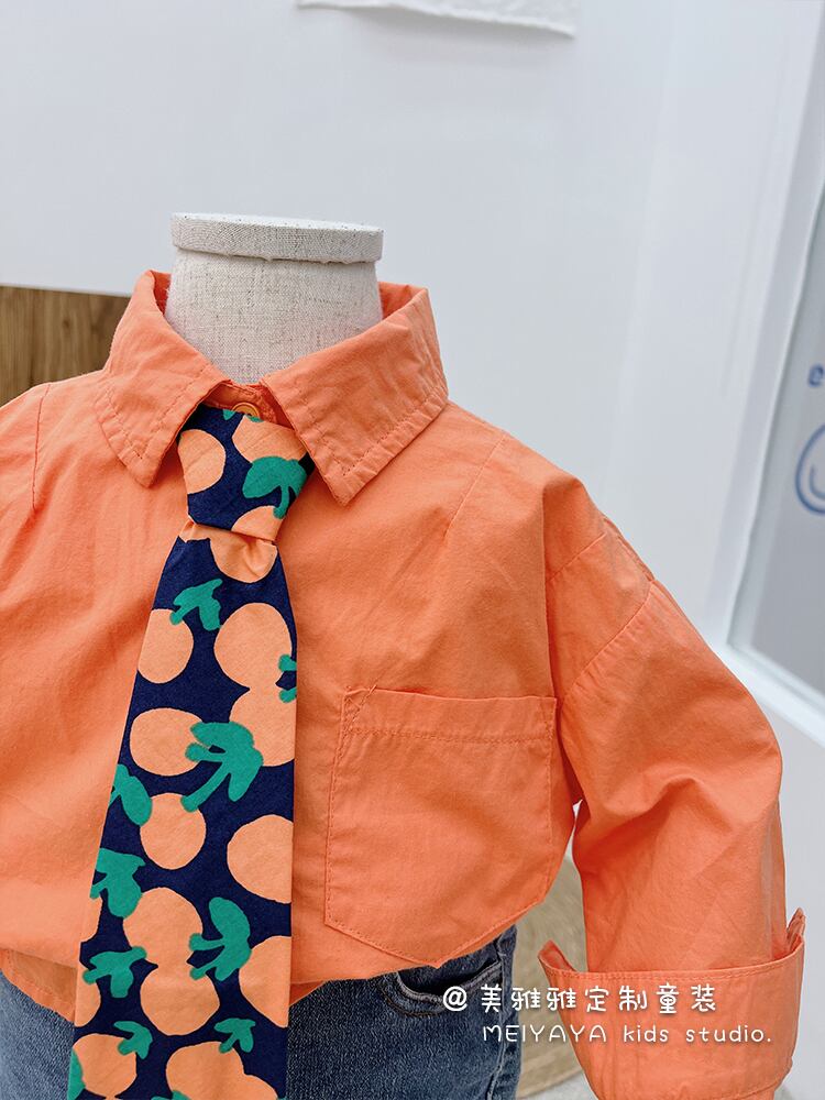 グリーンオレンジシャツ スタイルルーズカーディガン ロング 4/12 春夏 SS 子供服 韓国風 mi0655858901743