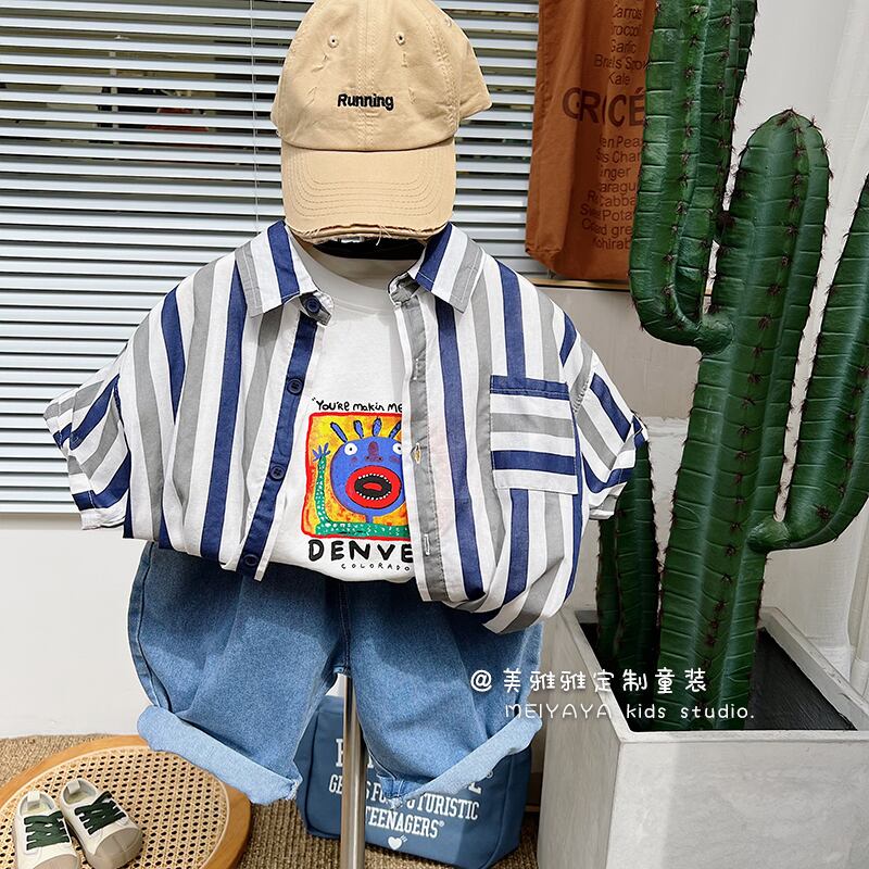 サマーストライプカーディガンシャツ 夏物 4/12 春夏 SS 子供服 韓国風 mi0650436785306