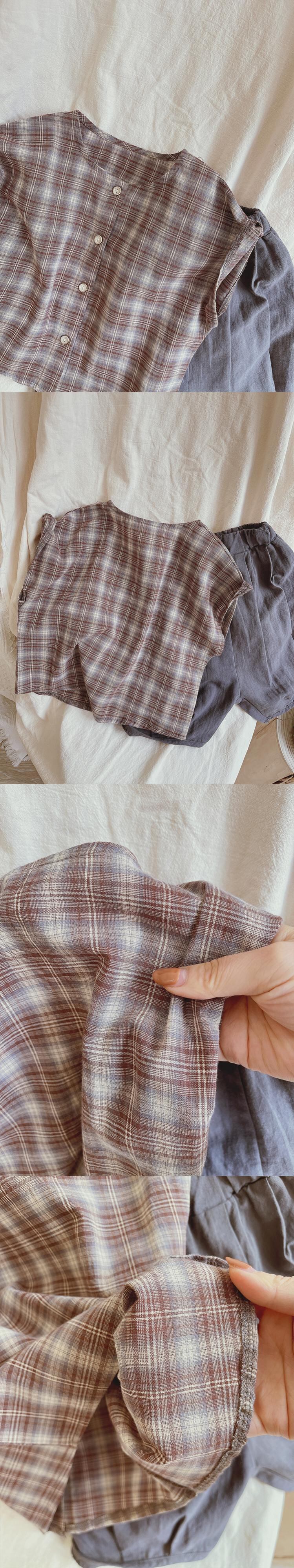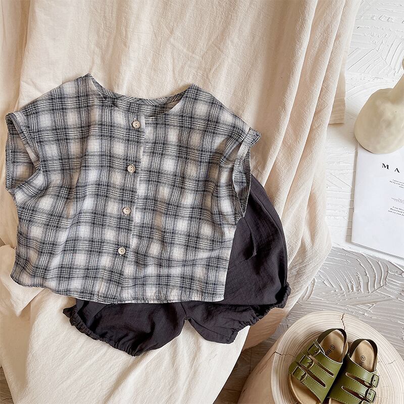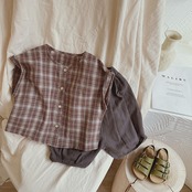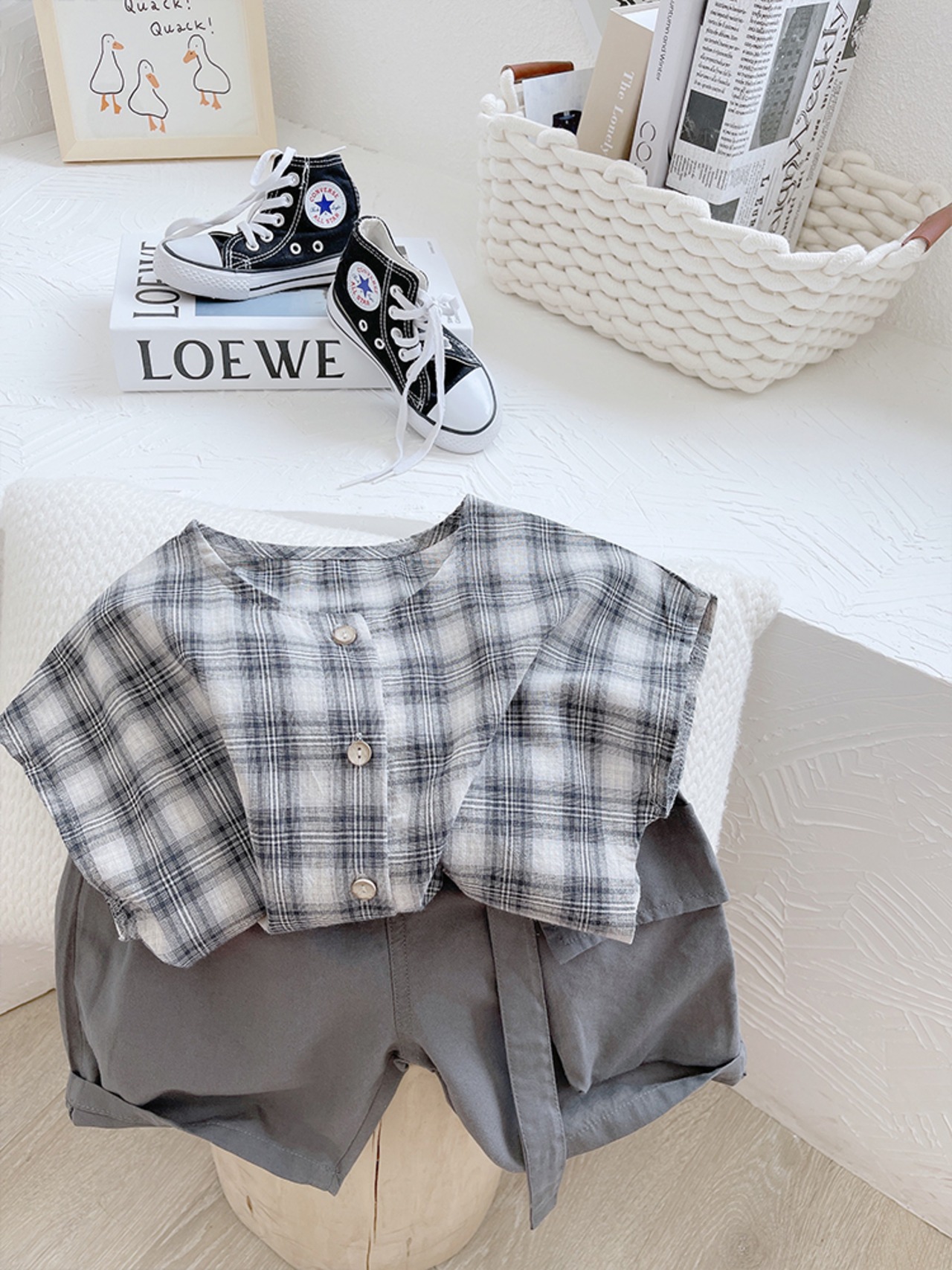 格子柄Tシャツ ルーズラウンドネックノースリーブトップス カジュアルカーディガン Oネック 4/12 春夏 SS 子供服 韓国風 mi0652658105465