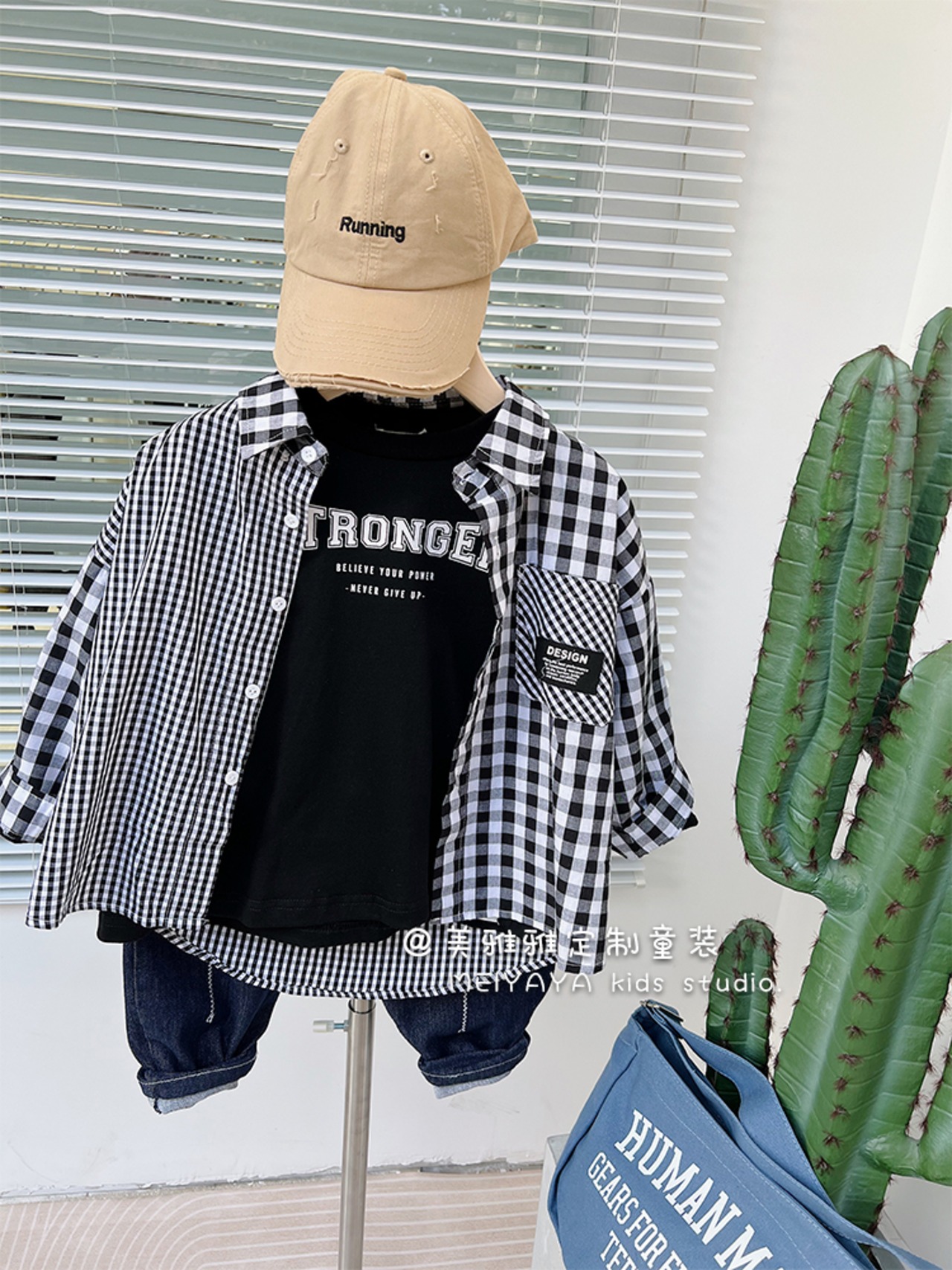 スプリングシャツ ボタンカーディガンロング コットン 長袖 春物 ステッチ 4/12 春夏 SS 子供服 韓国風 mi0618137043833